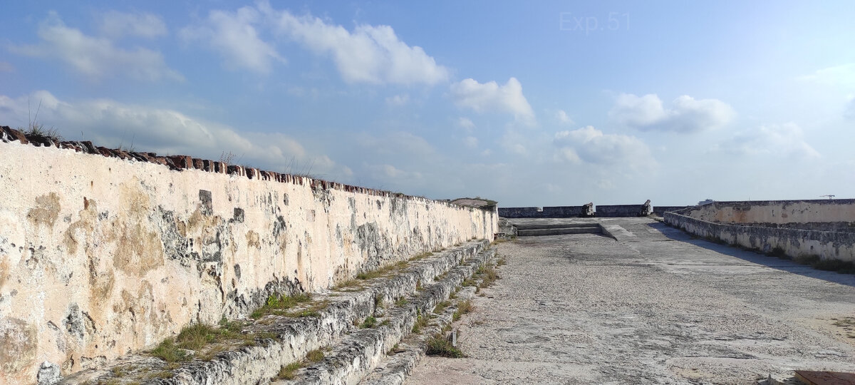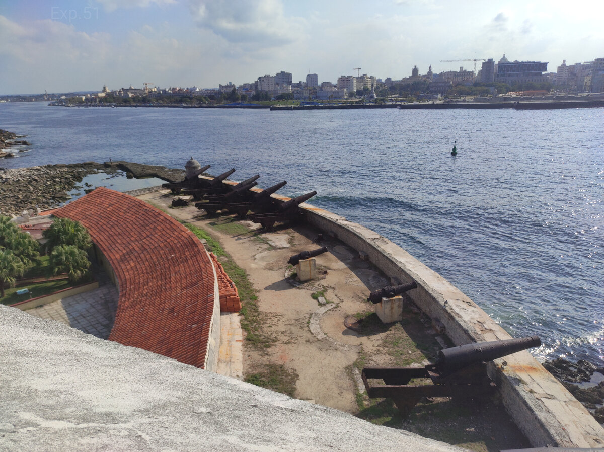 Галерея выходит на широкую площадку, с которой открывается хороший вид на Гавану. Снизу расположена береговая батарея "12 Апостолов". Вообще, названия многих сооружений крепости имеют библейские отсылки, даже сама крепость известна также как "Крепость Волхвов".