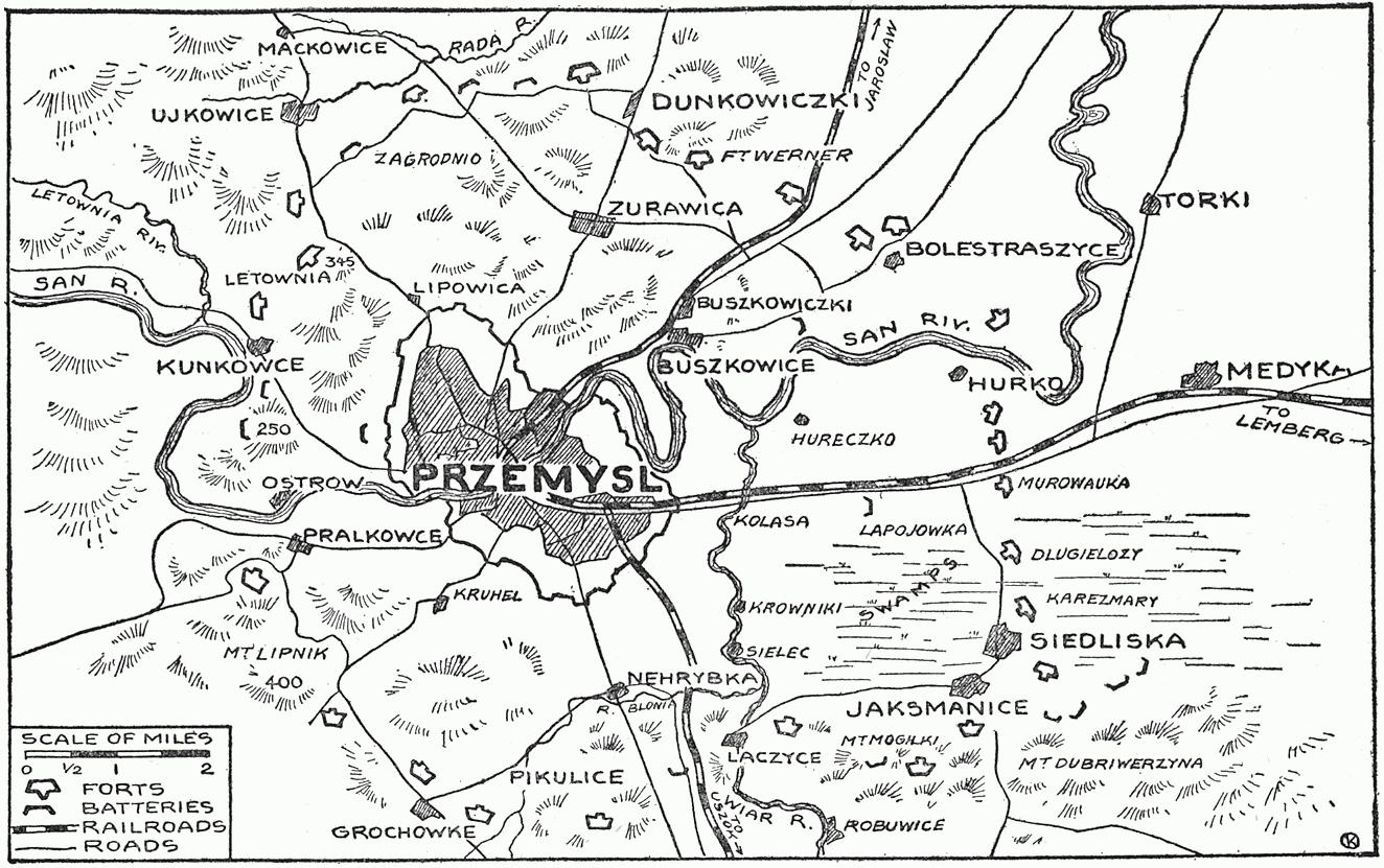 Крепость Перемышль, расположенная в Галиции, на реке Сан, была крупнейшим укрепрайоном империи Габсбургов на восточной границе.
