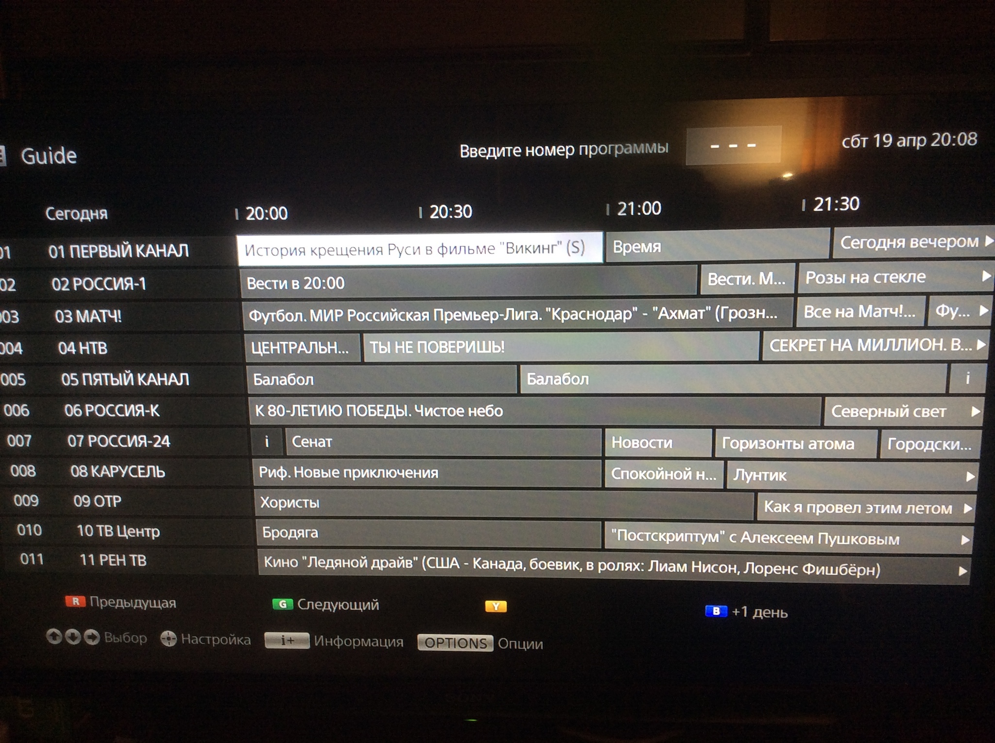 Вот программа телепередач на 19 апреля 2025г. накануне прошедшей в этом году Пасхи (фотография экрана зомбопанели):