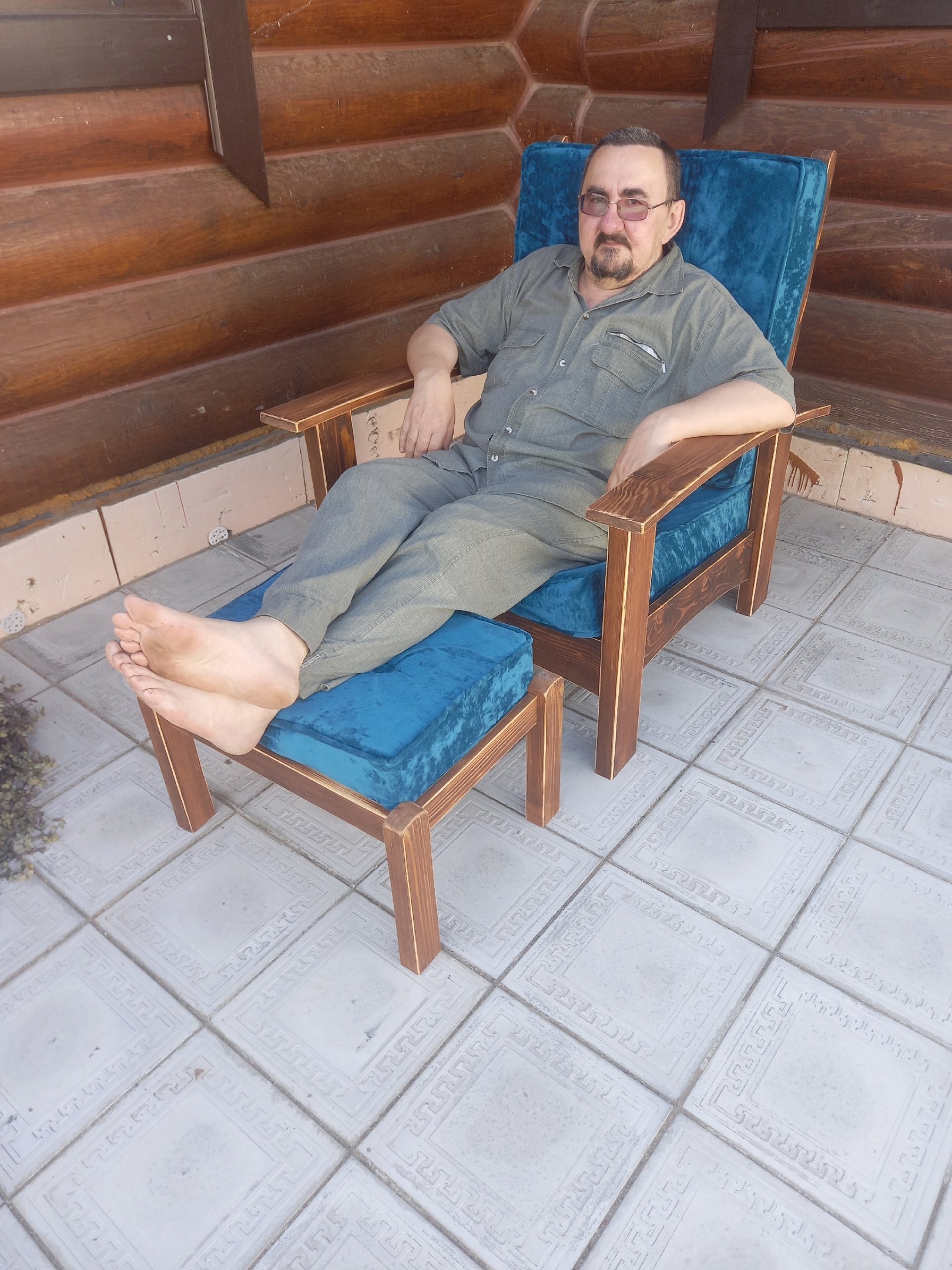 Осталось в некоторых местах добавить морилки и покрыть маслом. Но, в общем, эксперимент можно считать удачным. Мне хорошо на нем сидеть.