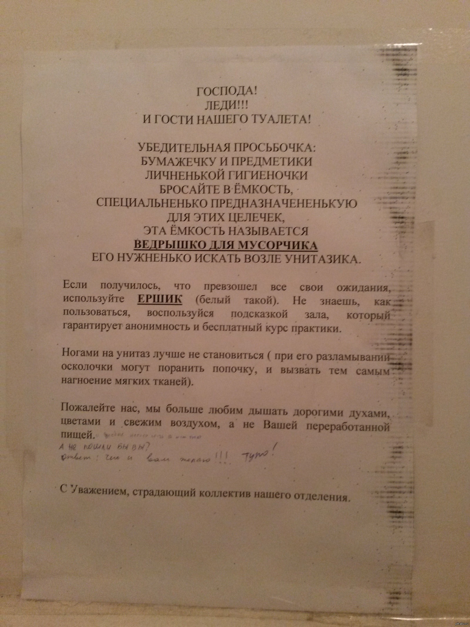 3 LoonyLery Крик души 12 лет назад Приписки мелкого рукописного текста в нижней части листа не влияют на общую эпичность произведения. Обращение Крик души Туалет