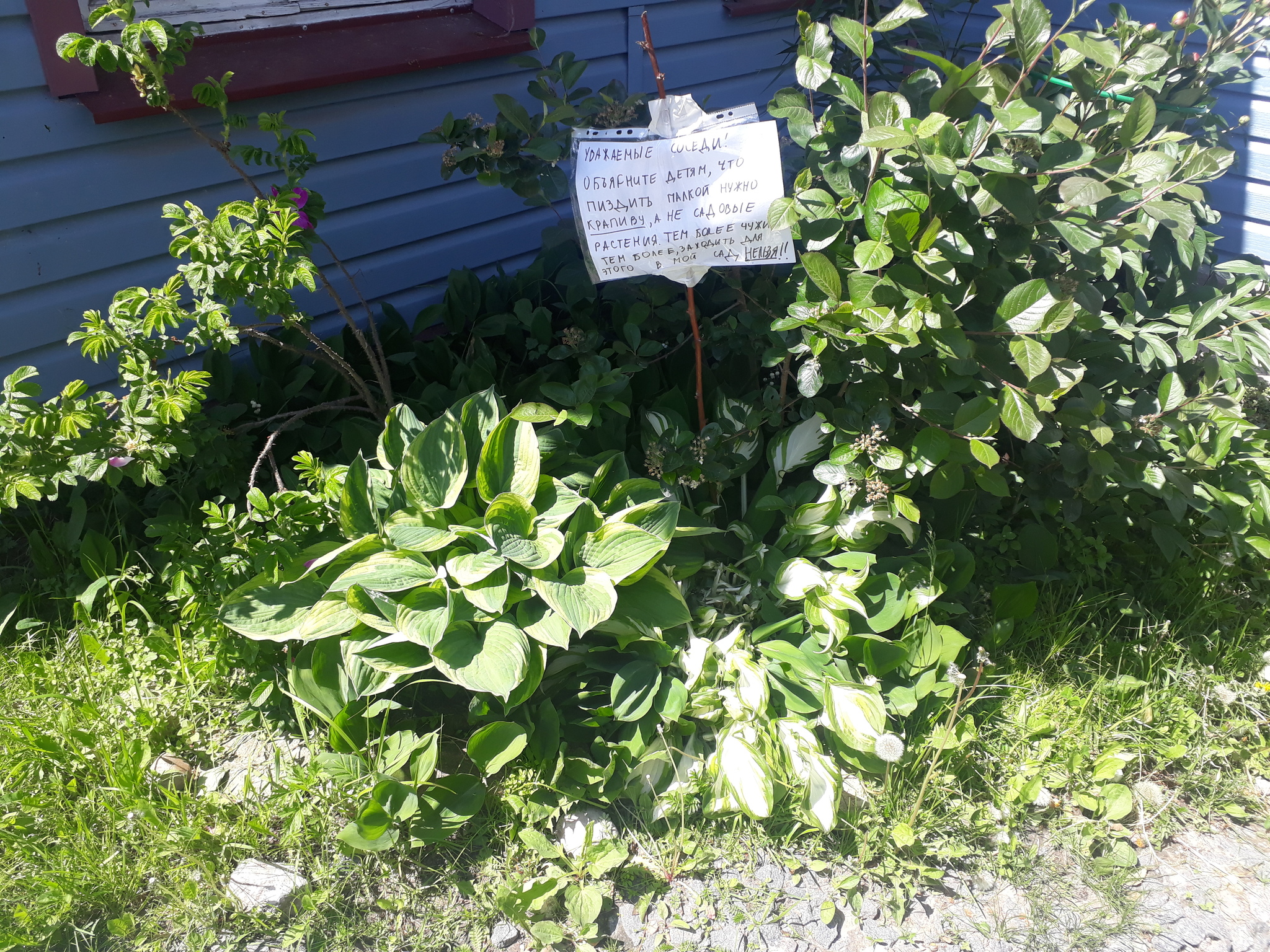 Хз почему, но вчера, когда я увидела изуродованую хосту не в самом садике, а у самого дома, у края дорожки, где ходят все соседи, меня, наконец, прорвало. В будний день в рабочее время увидеть никого не удалось, поэтому я оставила записку над искалеченой кочкой.