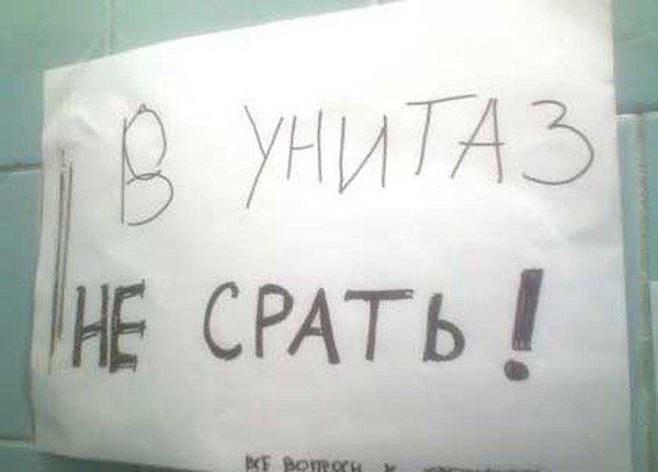 Граждане, если у вас в унитазе плохо уходит вода, и вам кажется, что он засорился или скоро засорится и пора вызвать сантехника. Пожалуйста , не срите в него, дождитесь пока сантехник вам прочистит засор.