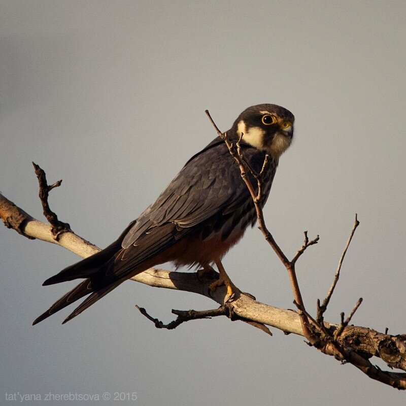 Сокол-чеглок. Хищная птица, питающаяся насекомыми и небольшими птицами. Внешне очень похож на сапсана, но меньше по размеру, и с небольшими отличиями в "рубашке". И если сапсан по праву считается самой быстрой птицей, то чеглок наверное самый виртуозный сокол. Ему одному дано поймать, уверенную в своей безнаказанности, ласточку.