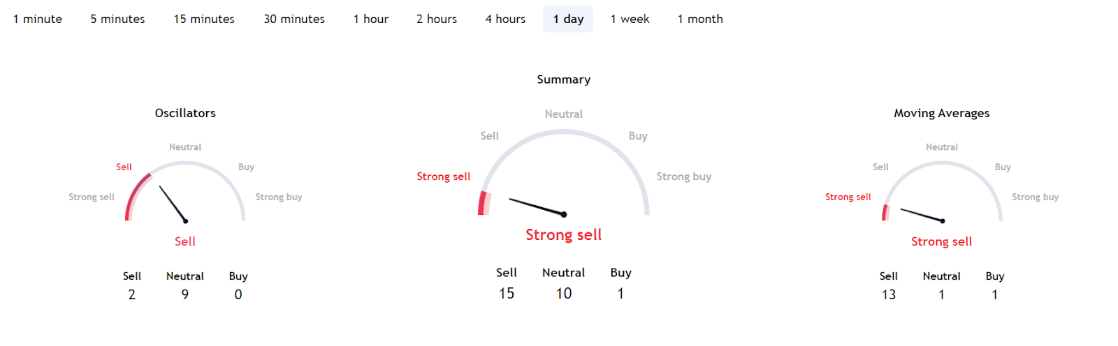 В то же время показатели однодневного технического анализа DOGE на платформе финансового и криптомониторинга TradingView указывают на сильные медвежьи настроения, предполагая «сильную продажу» на уровне 1.