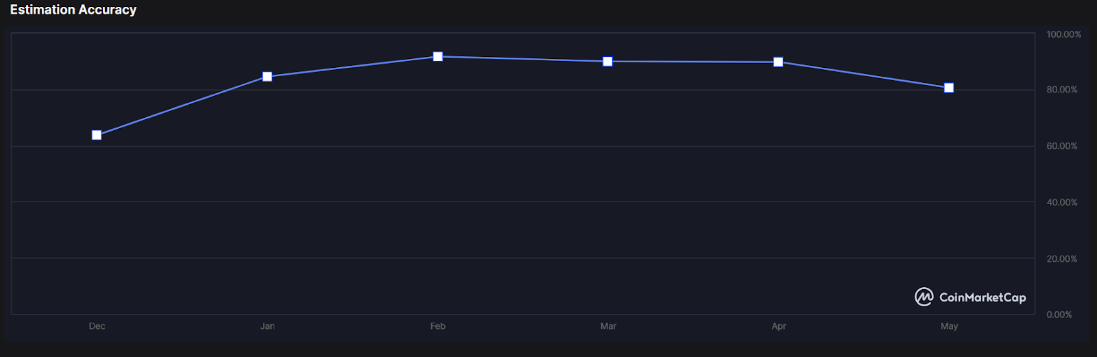 Точность прогнозов сообщества по DOGE. Источник: CoinMarketCap