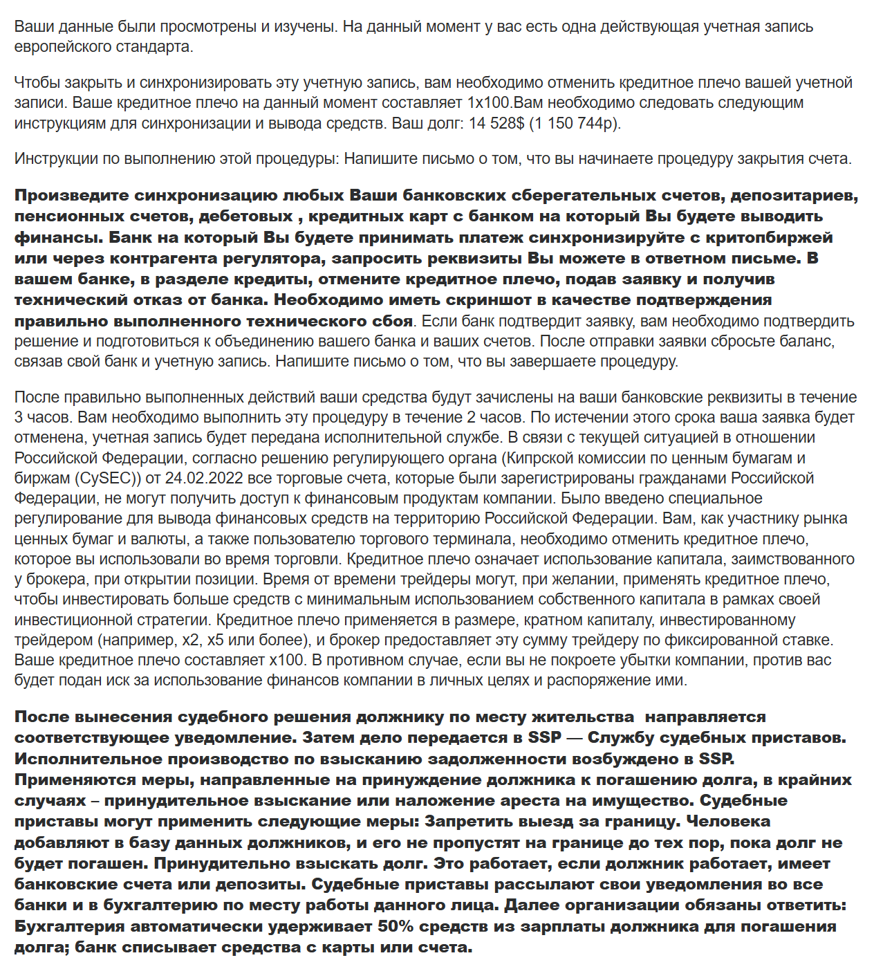 Я сразу сказал ему, что денег, которые он туда внес уже 100% не увидит. С этим он уже смирился. Но вот недавно ему прислали письмо следующего содержания: