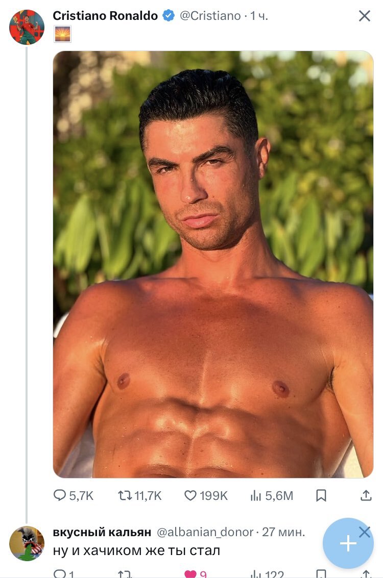 6 tematkachenko Футбол на Пикабу Спорт Криштиану, как ты мог? 8 месяцев назад Зачётный коммент 😁 Ссыль Криштиану Роналду Спорт Футбол Скриншот Юмор Twitter (ссылка) 1 Ещё 0