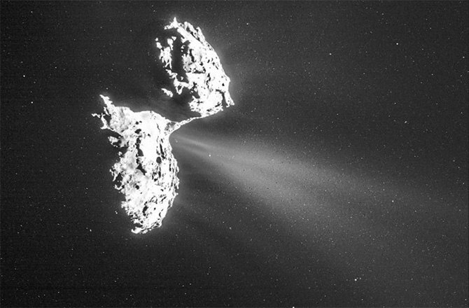 Согласен. Я вообще предположу, что у этой кометы это могут быть видны несколько мощных джетов, извергающих кипящий газ из жерл кометы, покрытой пылевой коркой. На таких удалениях форму собственно кометы хер разглядишь, только форму комы кометы.