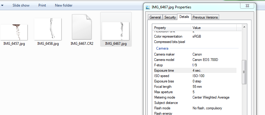 Чтобы держать затвор открытым 4 секунды нужен штатив. На такой выдержке снимают звездное небо, ночной город, можно автострады, чтобы прикольно размазыаались фары и фонари. А вода снимается минимум на 1/250 дальше вспышка не синхронизируется. На более коротких выдержках нужен постоянный яркий свет.