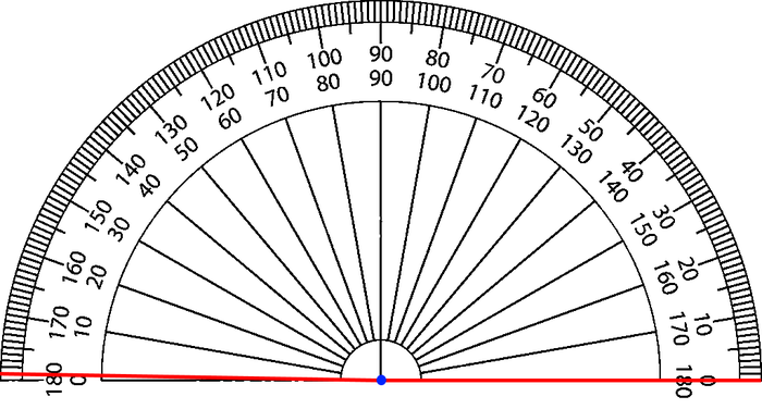 Как вы могли заметить, на транспортире я изобразил красным цветом два отрезка, находящихся под углом в 1° друг к другу.