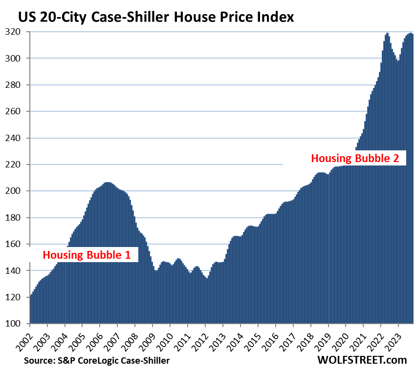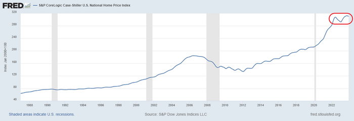 Интересно выглядит индекс Кейса-Шиллера, который начертил двойную вершину.