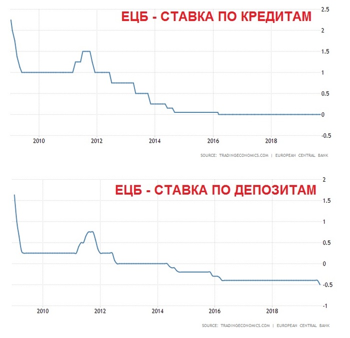 Доказательство №6. ПОСМОТРИТЕ НА ОТРИЦАТЕЛЬНЫЕ СТАВКИ ЕВРОПЕЙСКОГО ЦЕНТРОБАНКА! ЭТО НЕ МОЖЕТ ПРОДОЛЖАТЬСЯ ВЕЧНО. ФРС США ТОЖЕ НАЧАЛА СНИЖАТЬ СТАВКИ.