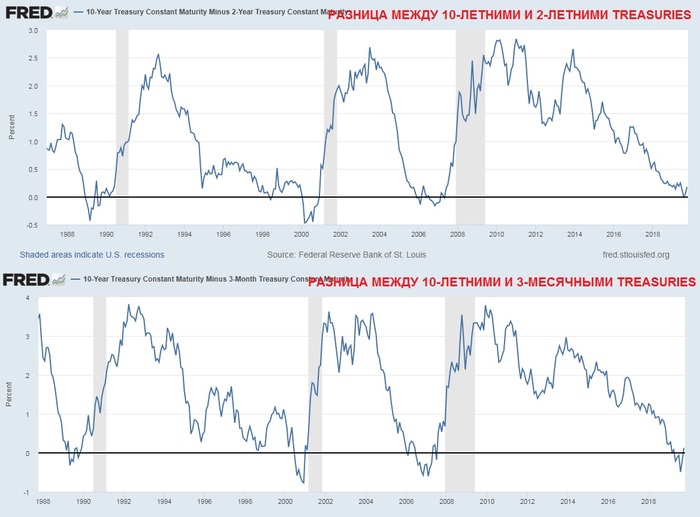 На графике - инверсия кривой доходности между "длинным" американским госдолгом и "коротким" американским госдолгом.