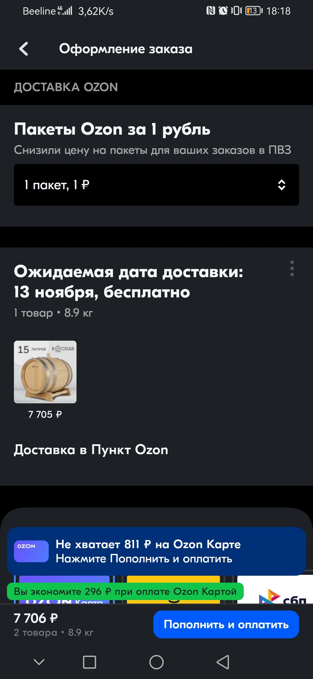 Обратите внимание, что теперь у Озона пакетики платные и по умолчанию входят в стоимость товара