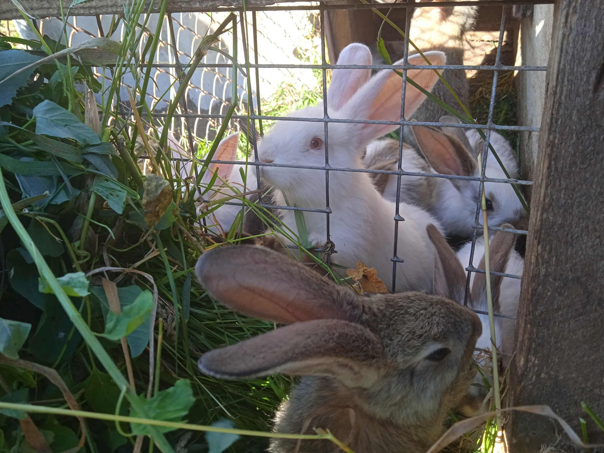 Пока всё на мне, чистка клеток, кормежка, подпускание к самцам. Каждое утро после всех утренних посиделок, мы со своей Организационной неПреступной Группировкой идём косить траву. Муж бывает накосит перед работой, но он больше косит, чтоб участок почистить, а я, всё равно, так же кошу, чтобы найти что то вкусненькое, для моих зайчиков))