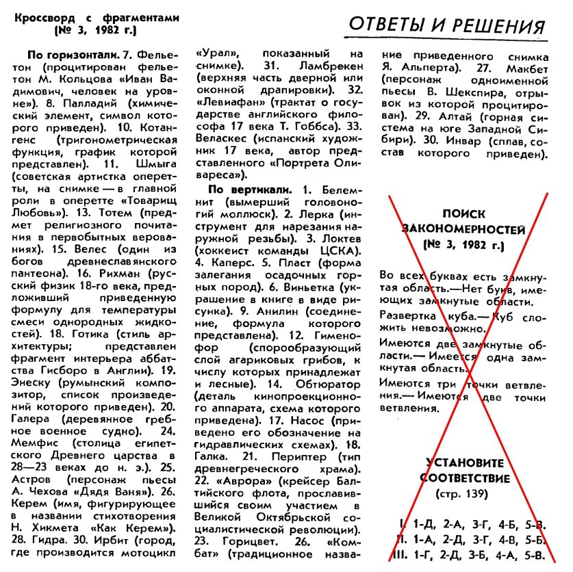 Ответы к: "Кроссворд с фрагментами".1982.3