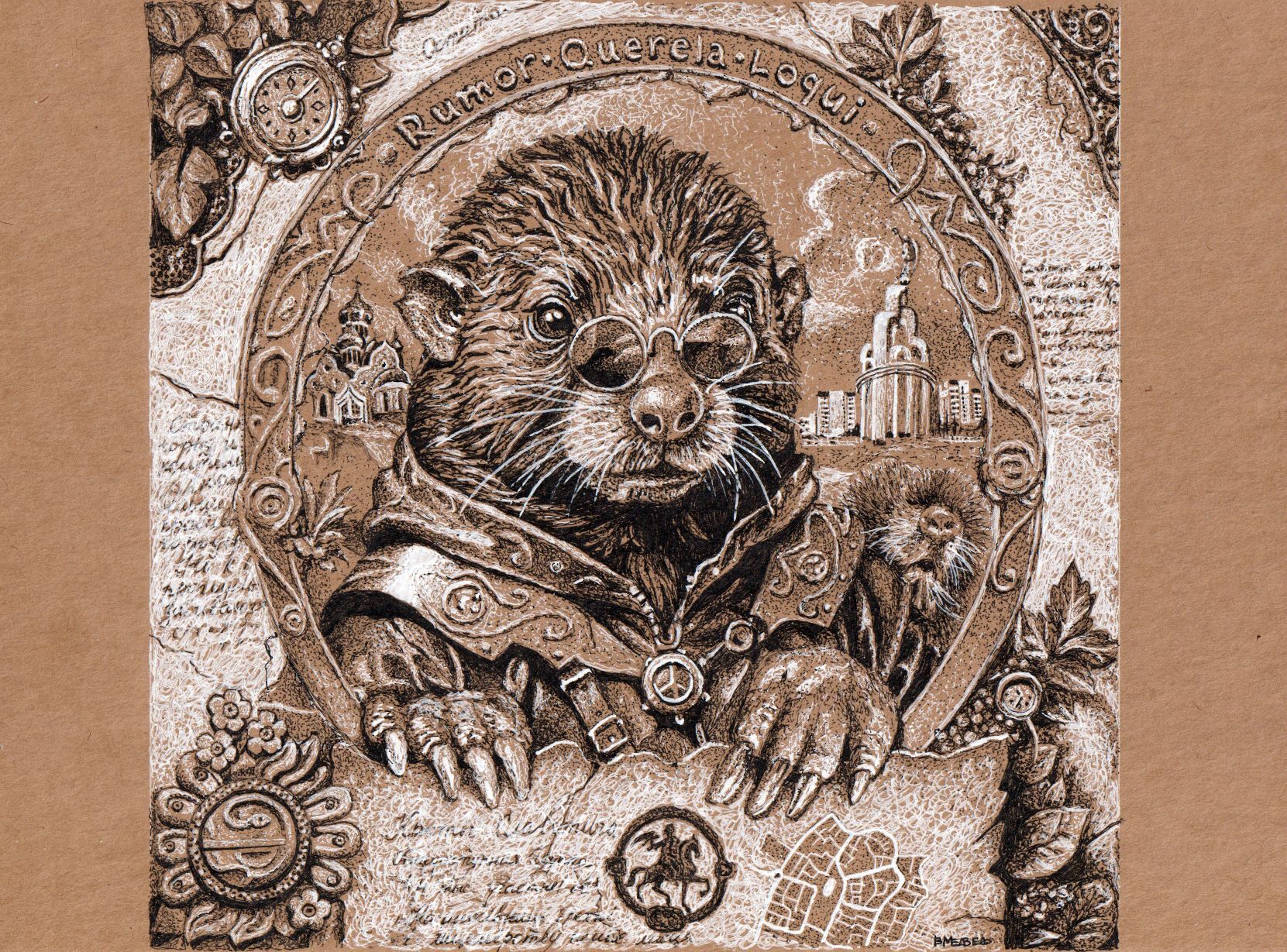 А4, крафтовая бумага, линер, гелевая ручка
