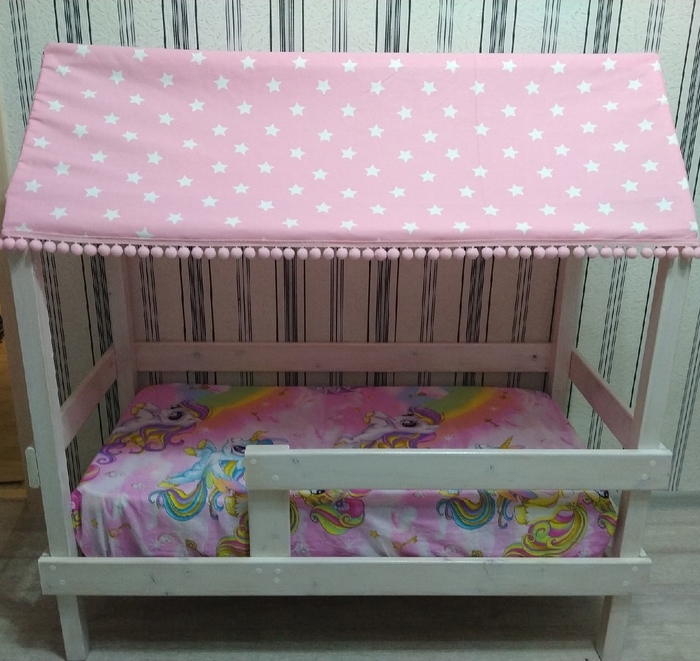 Попросила доча новую кроватку. После мониторинга цен на готовые детские кровати решено было попробовать сделать своими руками. Выбор пал на кровать- домик. Примерно такую: