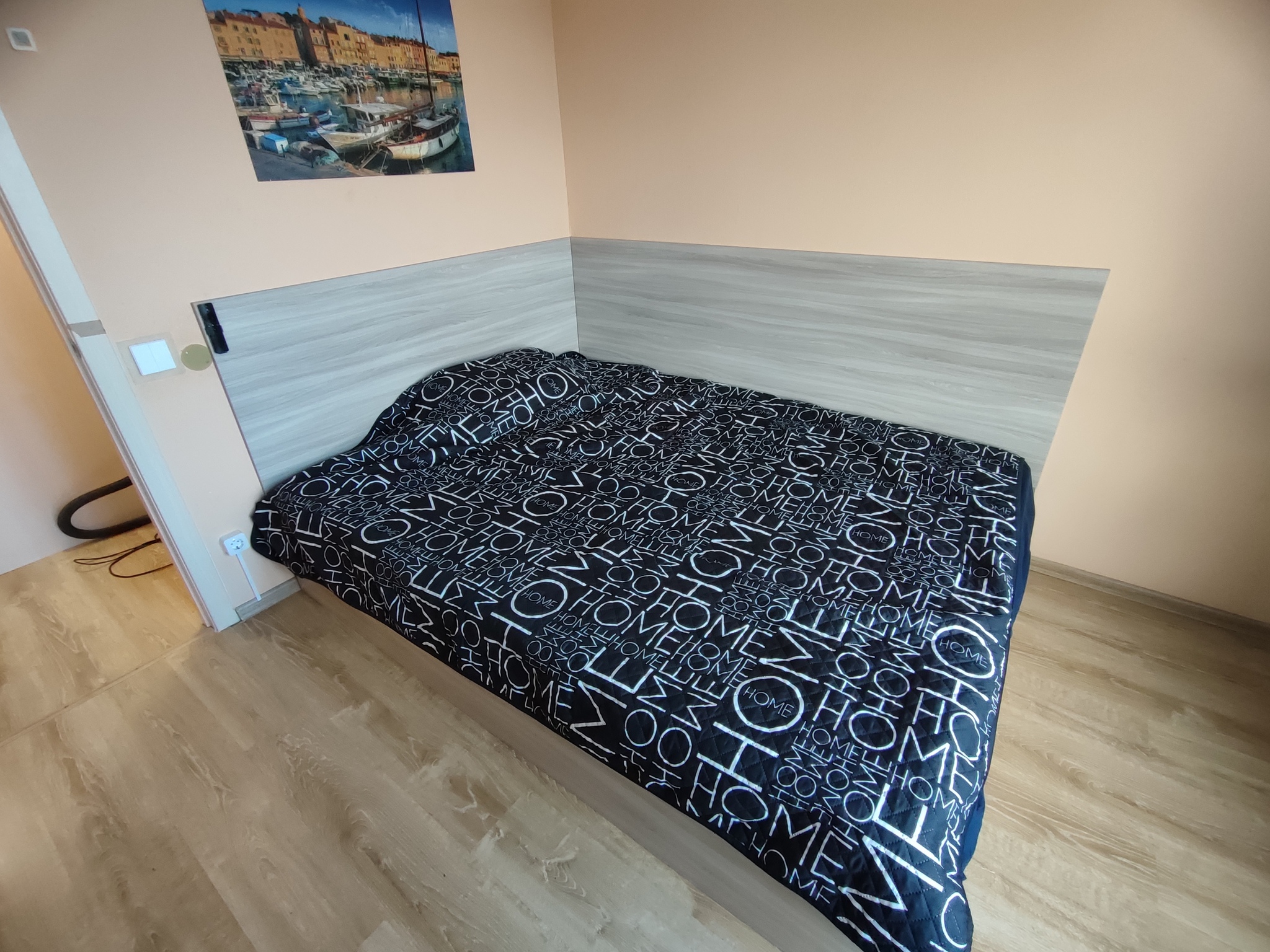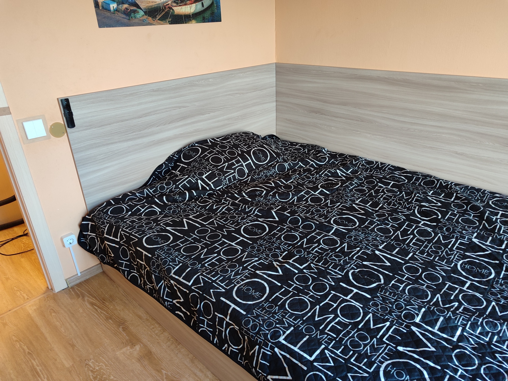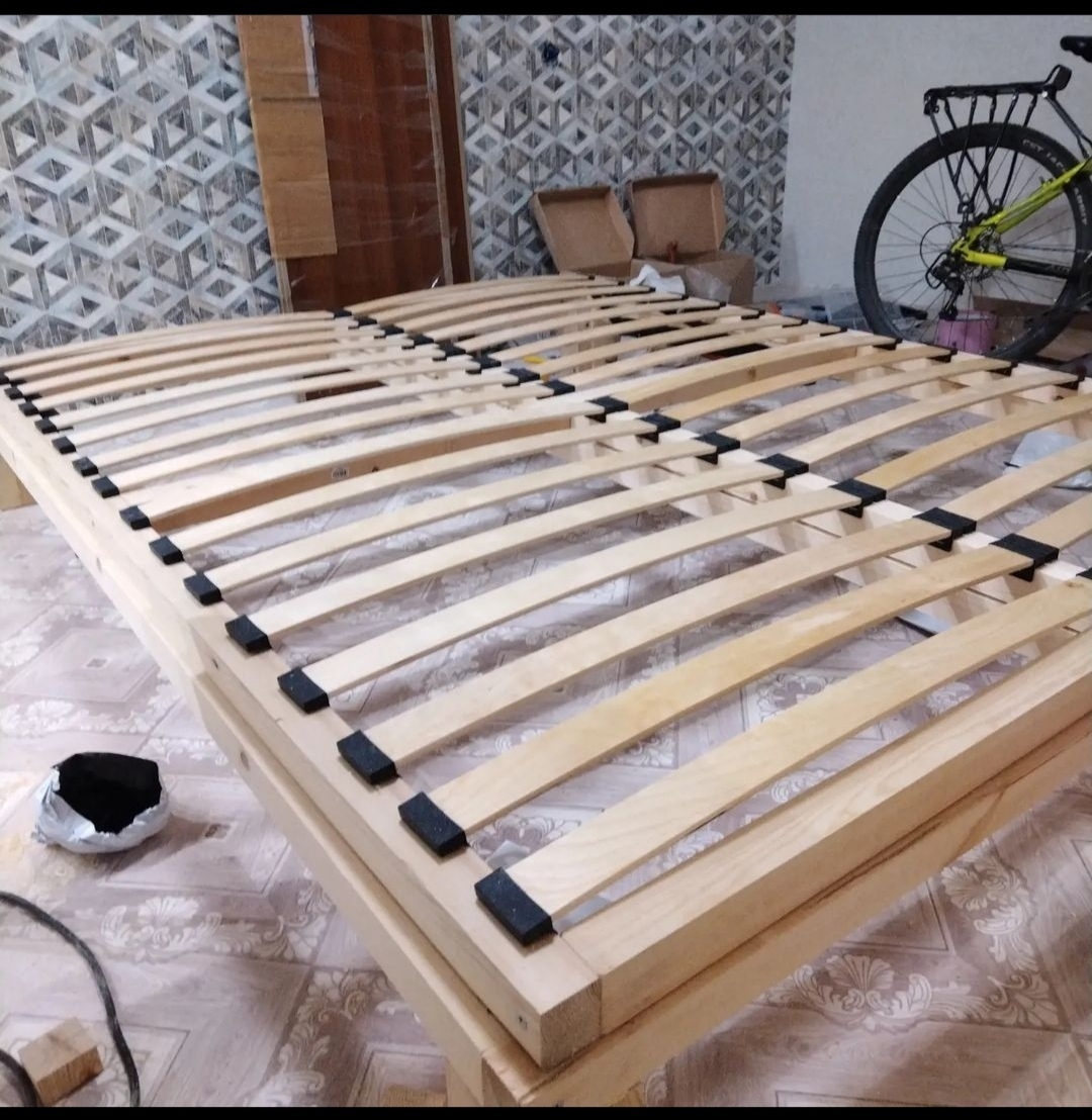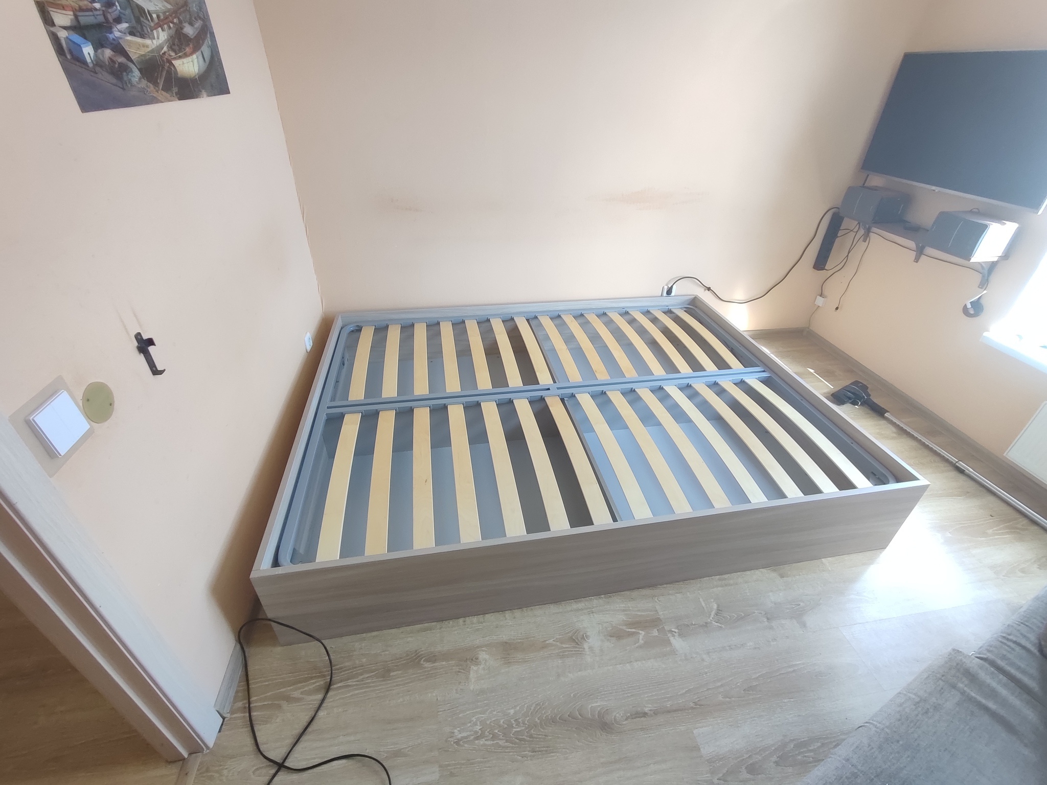 Решил маме кровать с хорошим матрасом подарить, чтобы спина не болела из-за старого раскладного дивана. В комнате лишнего места нет, нужно было уместить на место дивана. Места есть 217х127см, плюс нужно боковое открытие. В магазинах не нашлось подходящей кровати, решил делать сам. Отвёз маму смотреть матрасы, не видя цен, понравился полностью латексный, за 48т (+3т наматрасник). Заказал, купил фурнитуру (уголки, решётку и тд.).