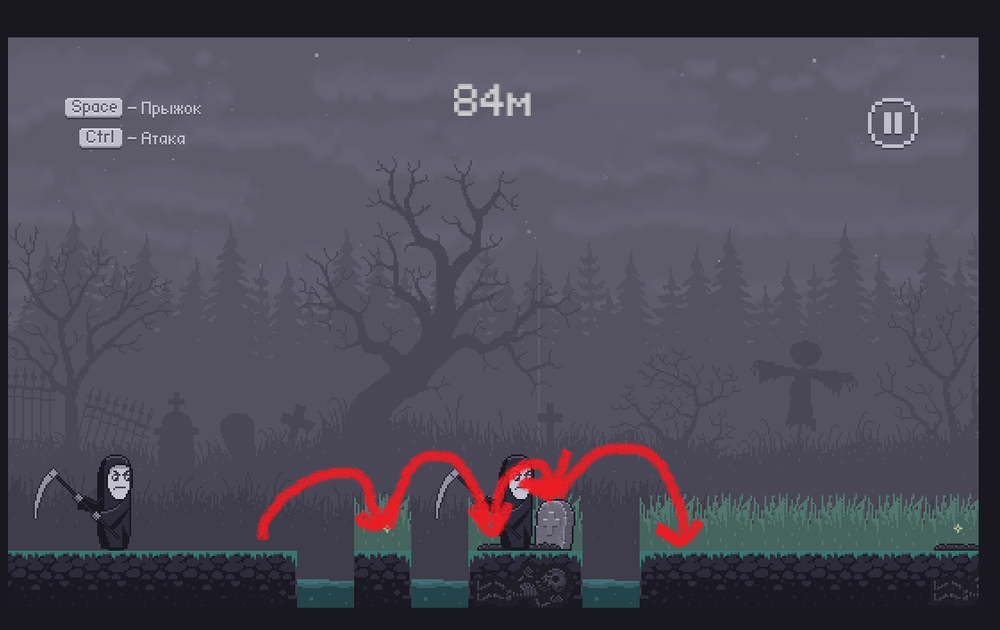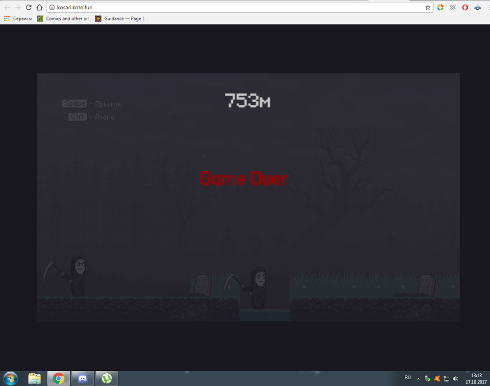Мы — команда разработчиков, состоящая из 7 человек из 3 стран и 6 городов — собрались и запилили игру (runner) по мотивам популярного комикса @cynicmansion косари “Кровавая Коса”.