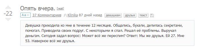 Вот тут пишут про зону. Как теперь сидится. А Я вам поведаю, как сиделось в 1975г. в г. Кохма, Ивановской обл. Зона общего режима. Рассчитана на 1.000 чел. Загружена на 3.000. Контингент: Пацаны, мужики, козлы и пидарасы. Барак тоже делился на секции. Пацанские, мужицкие и козлятские. Пидоры в бараках не жили. Скитались по промке. Пацаны жили по землячествам. То есть г. Иваново был поделен на районы. И вот в каком районе ты жил, к тому землячеству и принадлежал. Все остальные (Кроме г. Кинешма Ивановской обл.) автоматом считались мужиками. Пацан платил 2 руб. в месяц в общее и жил "Спокойно". Если не платил, то выламывали к мужикам. Пацан был лишен передачи (Перелома), ларька и свиданки. Ларёк и передачу, он мог отобрать у любого мужика. Мужик не имел права ударить Пацана. Каралось ножом, либо хуем. Пацан не ходил на хозработы. Не выходил на промку. Игнорировал ментов. Менты после отбоя в барак не заходили. Просто боялись. Потому что любой заход, для них мог окончиться смертью. Сами же зеки резали друг, дружку примерно раз в неделю. За слова, за карточные долги. За косой взгляд. По обкумарке, либо по пьяни. Да за что угодно, лишь бы "Честь" не уронить. Пацан первый год спит на втором, либо на третьем ярусе. В 22.00 у него отбой. В 6.00 подъём. Первый ярус, это заслужить. "Они элита" Те которые на верху, подвергались проверке на "Пацана". Могли поднять ночью и спросить: Ответь за пацана! Короче бьют по ебалу человек 5 - 9. И ты должен хотя бы одному тоже зарядить в ебало. Потом конечно запинают, но за Пацана ответил. Молодец!!! Земляки впрягаться не могли. Шнырь каждую ночь проходняк от крови с ведра смывал, как на палубе корабля. Трупы родственникам не выдавали. Диагноз был один: Сердечная... . Опускали тоже на раз - два. Не по согласию (Как сейчас) а просто за долги, за косяки по разговору, или по прибалтухе. Тогда стригли всех на лысо. не болие месяца волос. Если скоро освобождаться, то берёшь спровку, что "Положняк" на полгода, до освобождения. Но за нарушение, могли и остричь. И стригли. Он зарезал ДПНКА одел его СКАЛЬП, форму. И прошёл через КПП зоны. Кровь на лбу его спалила. Пристрелили.