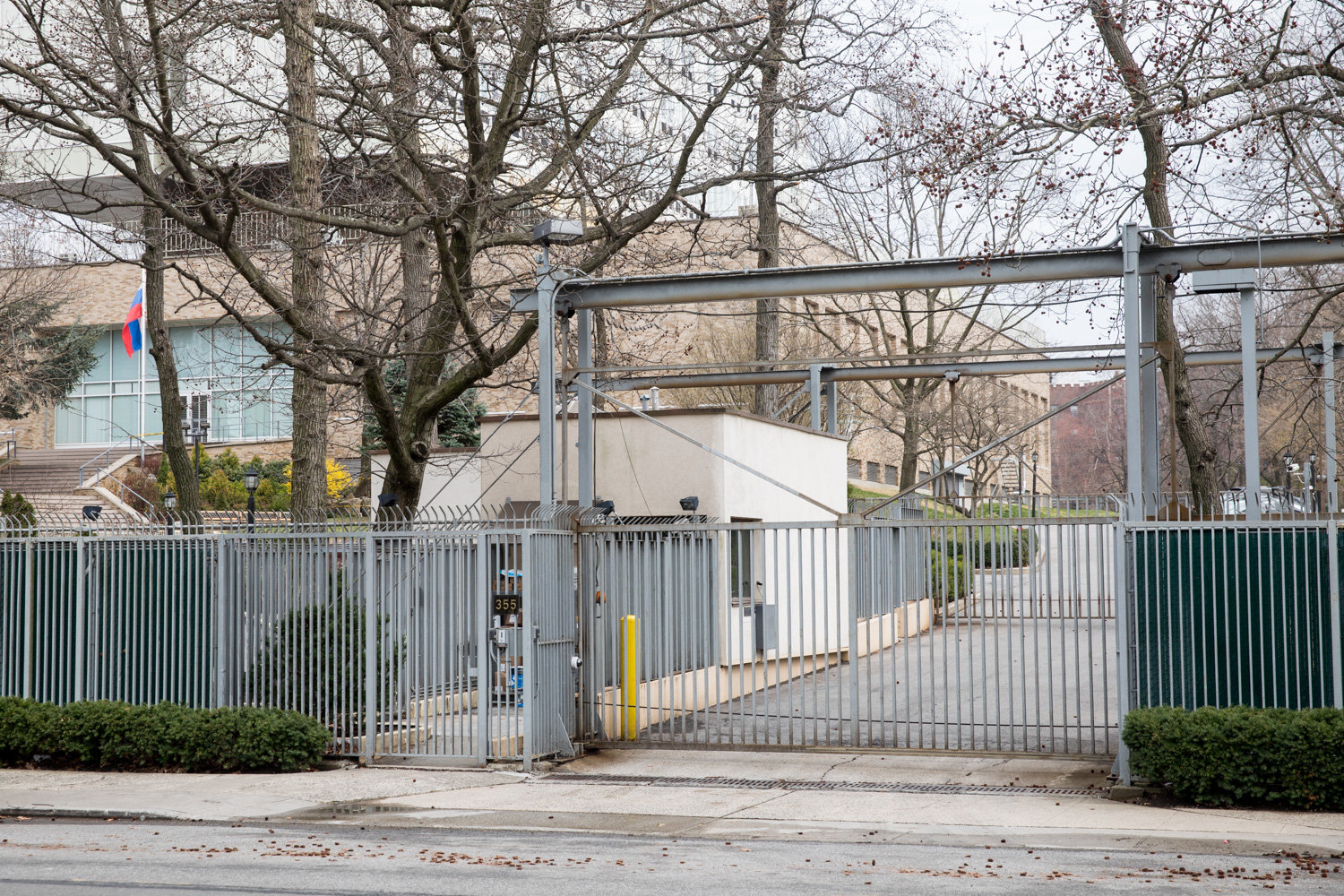 Первую калитку открывают для всяких служб доставки - посылки оставляют на небольшом стеллаже. Потом их проверяет российская охрана и относит на специальный склад. На территорию иностранцы попадают очень редко - например, когда нужен какой-то крупный ремонт вроде вышедшего из строя лифта и так далее.