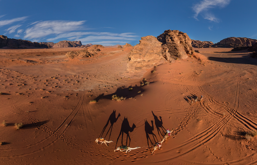 Это знаменитая Вади-Рам. "Лоуренс Аравийский", "Дюна", "Трансформеры", "Марсианин" - все это снимали здесь. Почти 750 квадратных километров песков, камней, ущелий, каньонов и гор. В наши дни - это национальный парк Иордании и очень популярное туристическое место. И не зря: