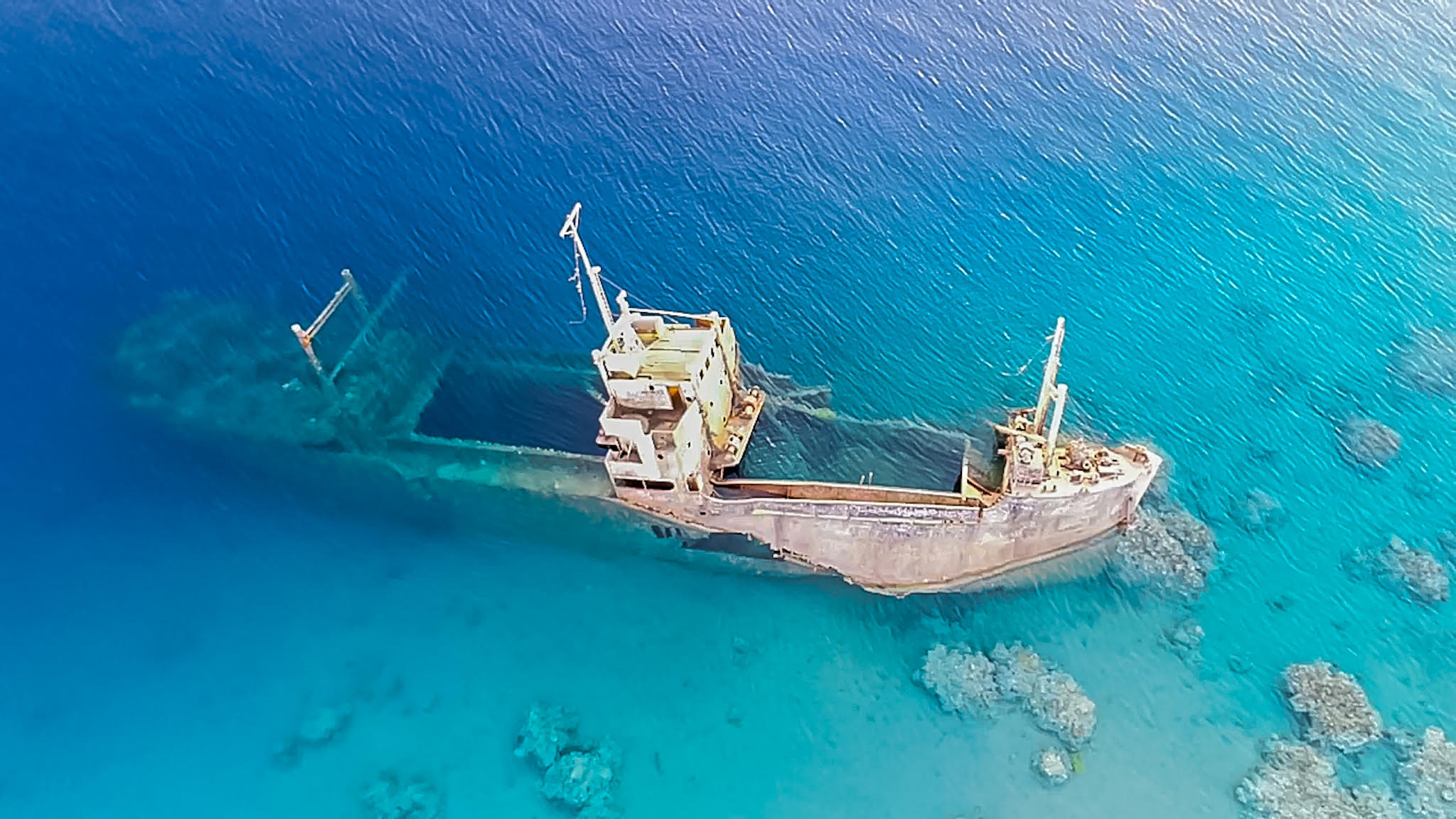 Чуть дальше по пути прямо в воде можно заметить останки "Саудовского Титаника" - греческого корабля Georgios, перевозившего муку и затонувшего в 1978 году после столкновения с коралловым рифом: