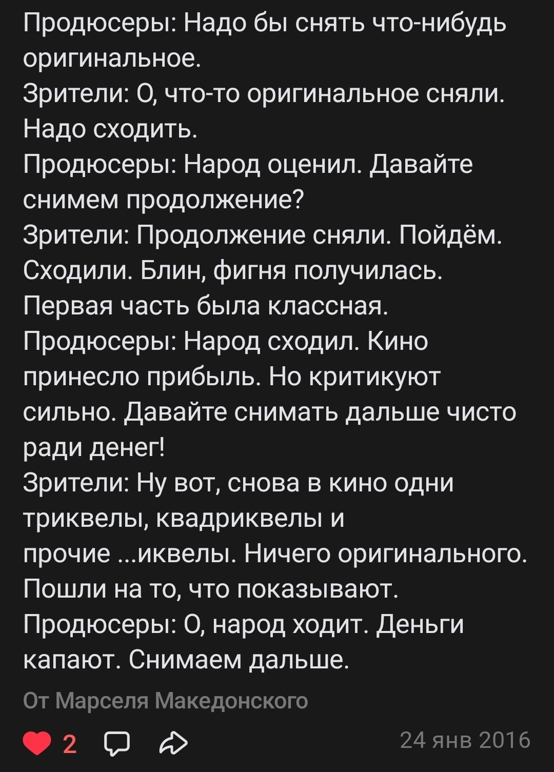 9 CineMars Диалоги о киношках Круговорот кино в природе 22 дня назад Взглянув на список самых кассовых фильмов уходящего 2025-го, вспомнил старый мем: Фильмы Новинки кино Кассовые сборы Сборы Юмор Дзен Яндекс Дзен (ссылка) Ещё 0