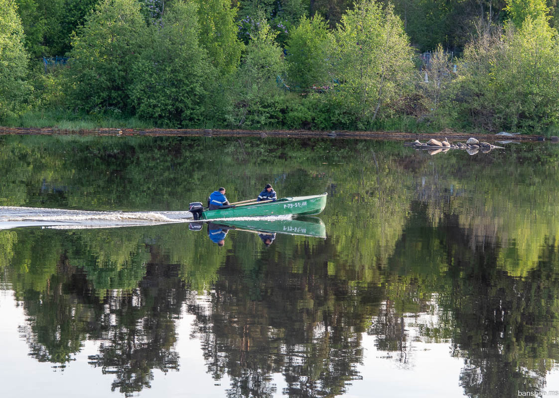 Утро было очень спокойное и вода в реке была как зеркало. Пока её кто-нибудь не баламутил.