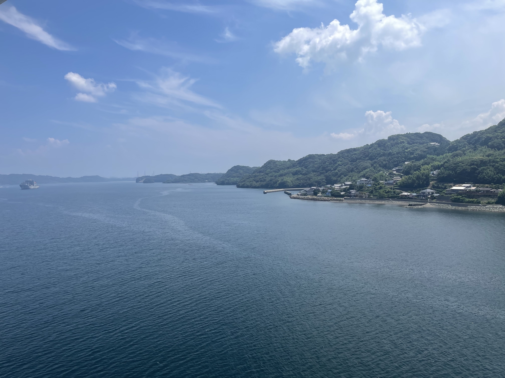 Далее нас томили целый час в автобусе, и привезли в магазин Японской косметики и медикаментов. Китайцам очень нравятся такие магазины. Им достопримечательностей не давай, а вот маску купить, или мазь какую, так это прям кайф. Тем более в другой стране. Тем более дорого. Мы же отказались от этого, и потратили 20 выделенных нам минут, на хождение вокруг магазина, в поисках чего то интересного. И ничего кроме аккуратных домиков не нашли. А дальше нас повезли в следующий магазин. Единственное, что можно было сквозь окно автобуса посмотреть на людей, да как они живут. Было интересно. В этой провинции я не видел ни одного строения выше двух этажей. Сам остров очень красивый.