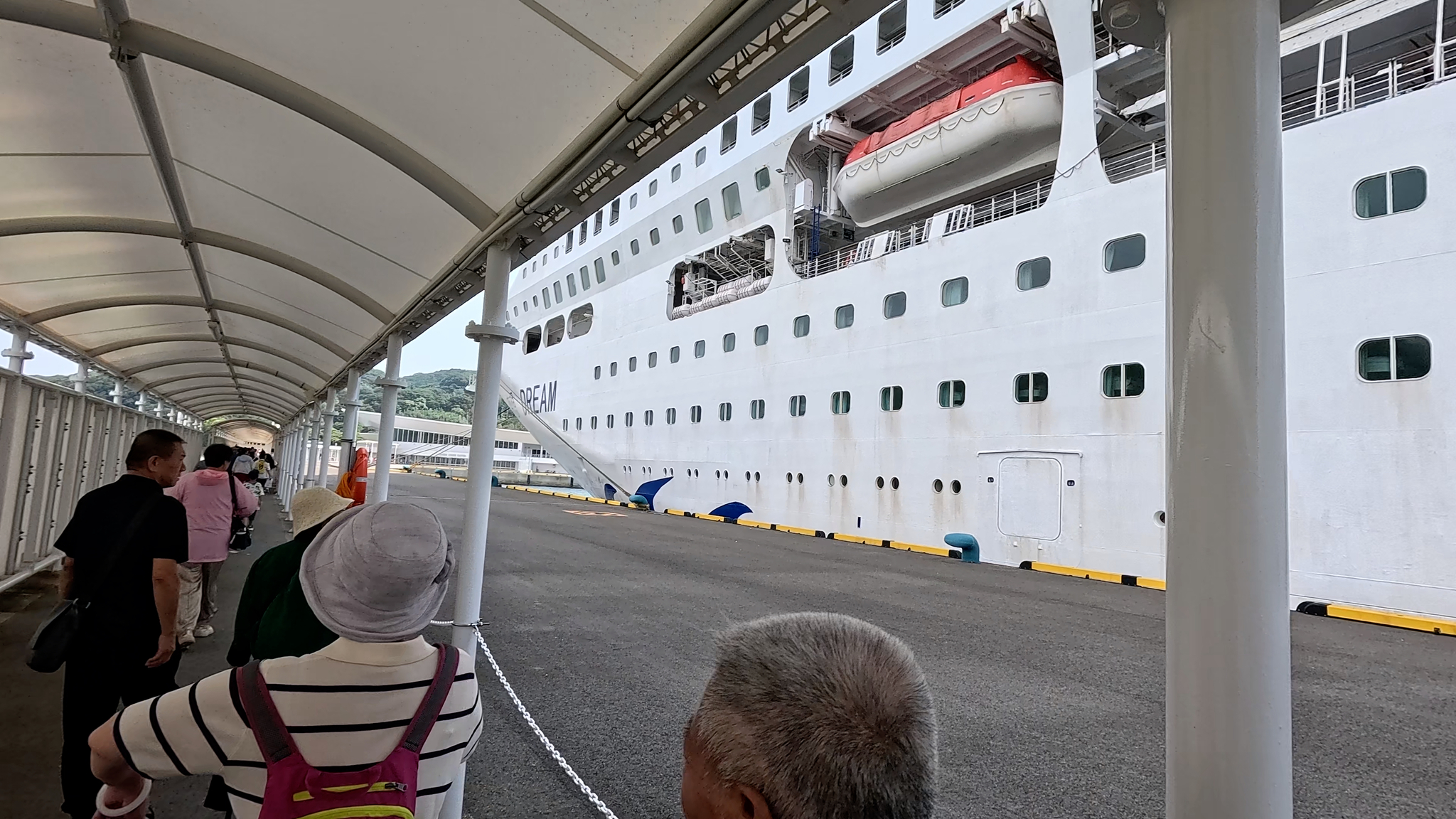 Всех пассажиров разделили на группы с номером (от 1 до 15). Вечером, на кануне, нам дали расписание на следующий день, в котором было указано время, в которое наша группа должна была собраться в ресторане и сойти на берег. Делается это для того, что бы избежать столпотворения. У каждой группы было свое время, и чем раньше ты покидал корабль, тем позже возвращался на него. С Отой нужно было иметь копию паспорта, а оригинал оставался на корабле. Это правило ввели недавно, после того, как с экскурсий не возвращались люди, и как нам сказал гид, каждый раз это было минимум три человека, которые хотели бы найти лучшую жизнь в Японии. Плюс с собой мы брали ключ от номера (он был именной), и на выходе из судна мы его сканировали, что бы персонал знал сколько людей на суше, а сколько на круизе.