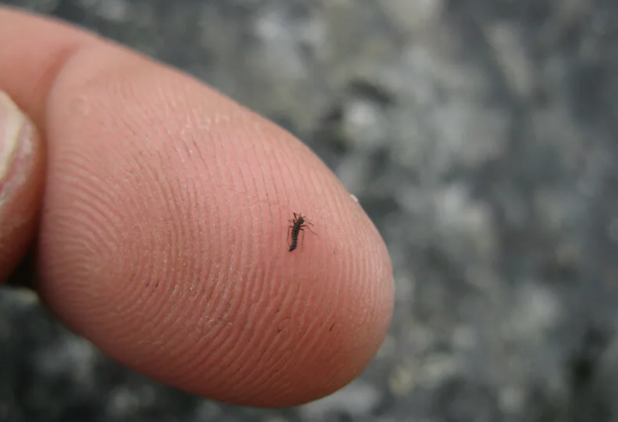 Знакомьтесь: антарктический бескрылый звонец (Belgica antarctica), единственное свободноживущее насекомое Антарктиды и - внезапно - крупнейшее сухопутное животное на этом материке (пингвины не в счёт, так как питаются в море).