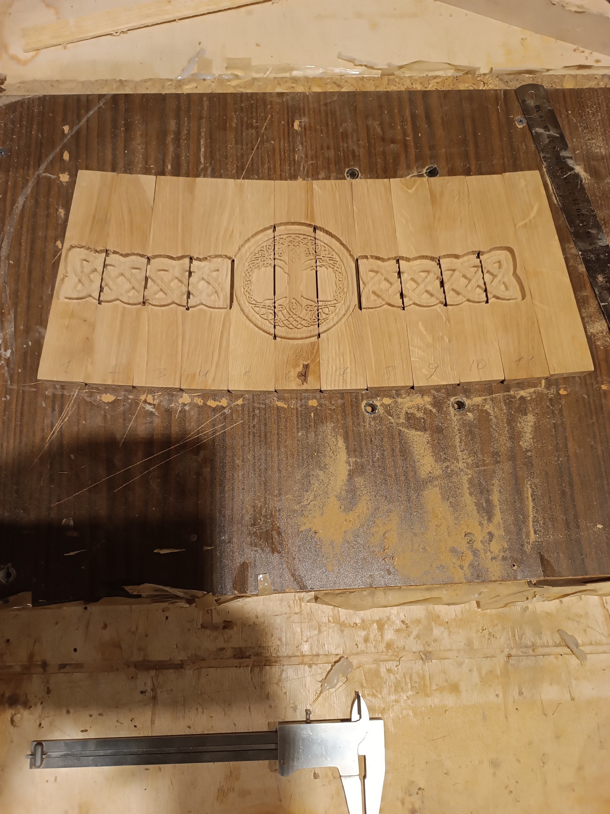 Почти угадал с шириной клёпок. Чтобы избавиться от щелей пришлось убрать с внутренней стороны до 2 мм, у верха они стали тонковаты, но терпимо.