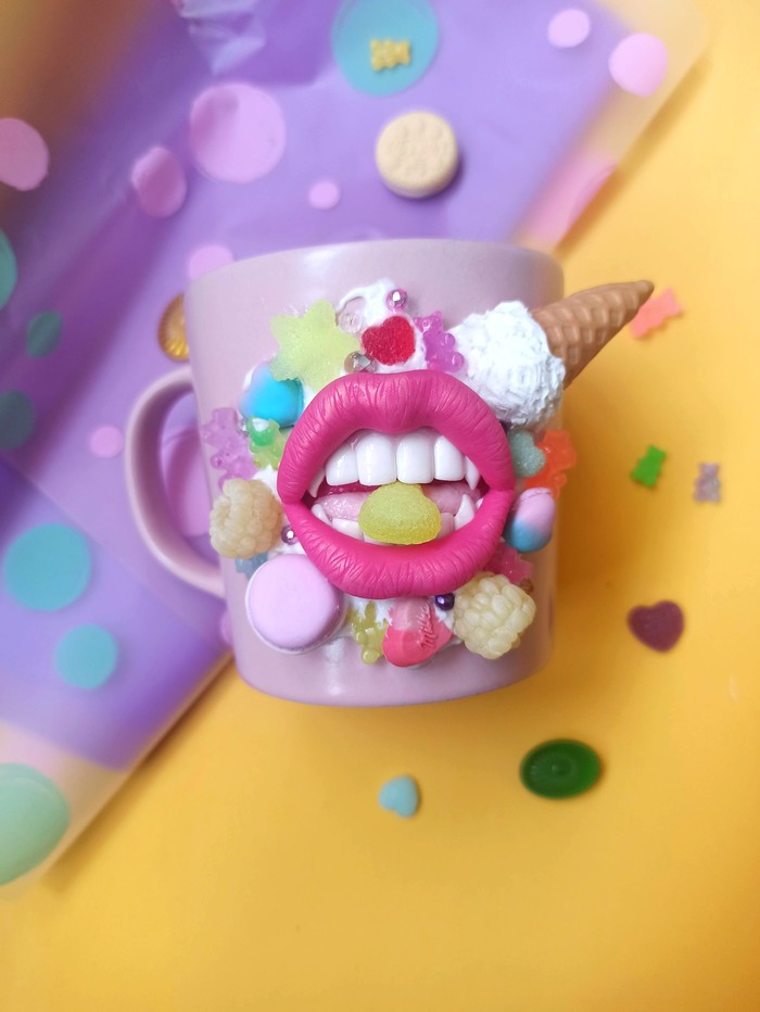 Было желание создать что-то милое, яркое и прям девчачье-девчачье - вот она вкусная, но несъедобная кружка с декором.