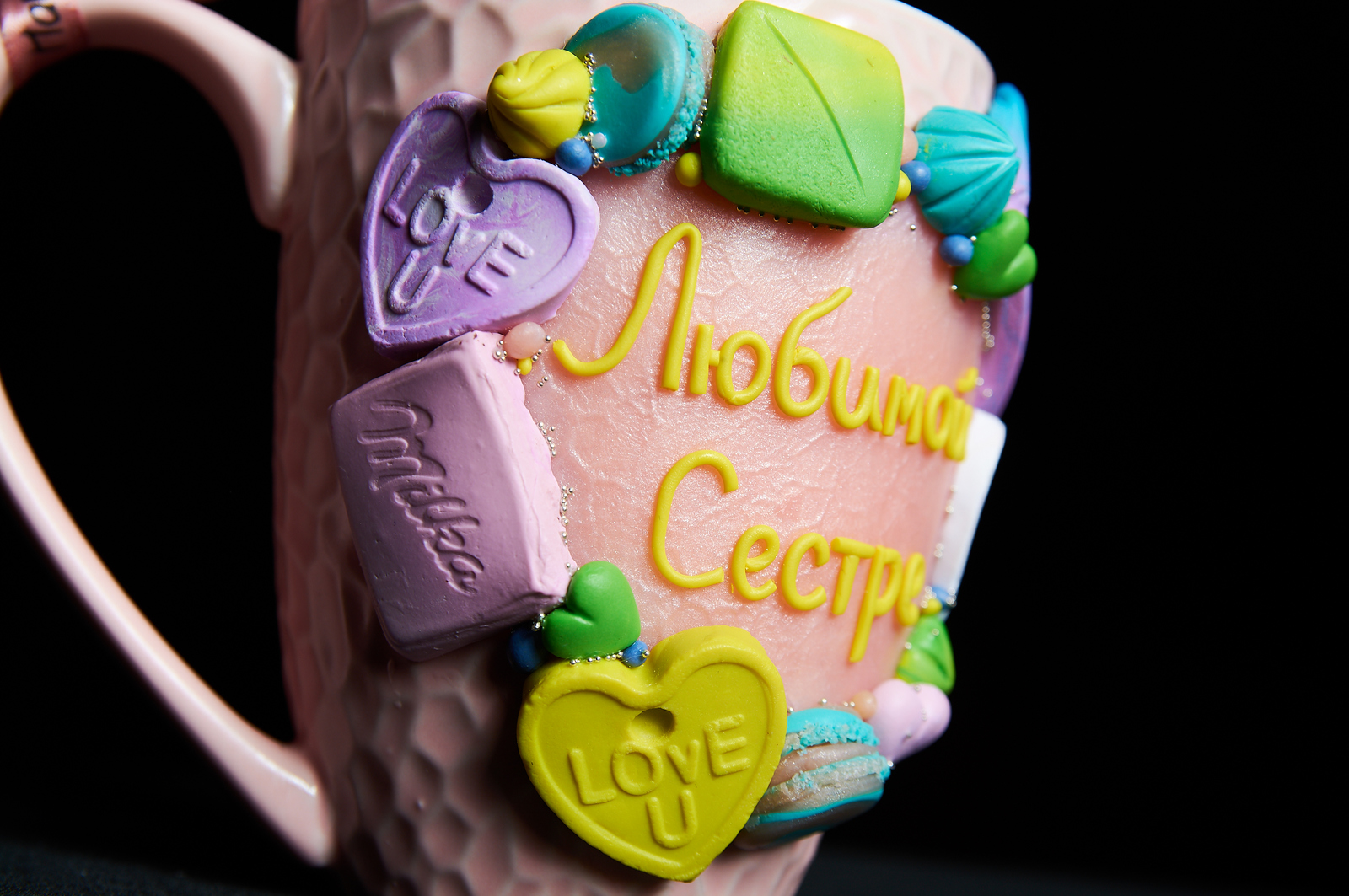 Сделать фото помог муж @mishakos ,за что ему большое спасибо а то из меня фотограф честно сказать так себе,слепки форм для работы я попробовала сделать сама из силикона ,сняты с настоящих сладостей,честно скажу закажу все таки у людей кто этим занимается,потому что те что я сделала плохо гнутся и тяжело вынимаются изделия, а вообще делая кружку орнамент не нравилась уже слишком яркие цвета но вышло супер,итог мне очень понравился, всем доброго дня и хорошего настроения перед 8 марта!