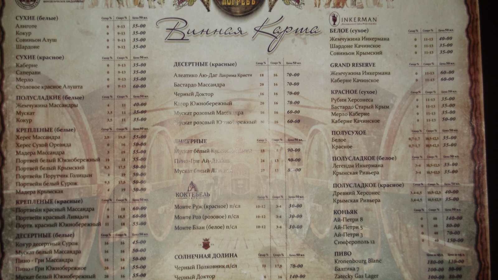 Отведали очень вкусного вина. Кому интересно, ниже фото с винной картой и ценами.