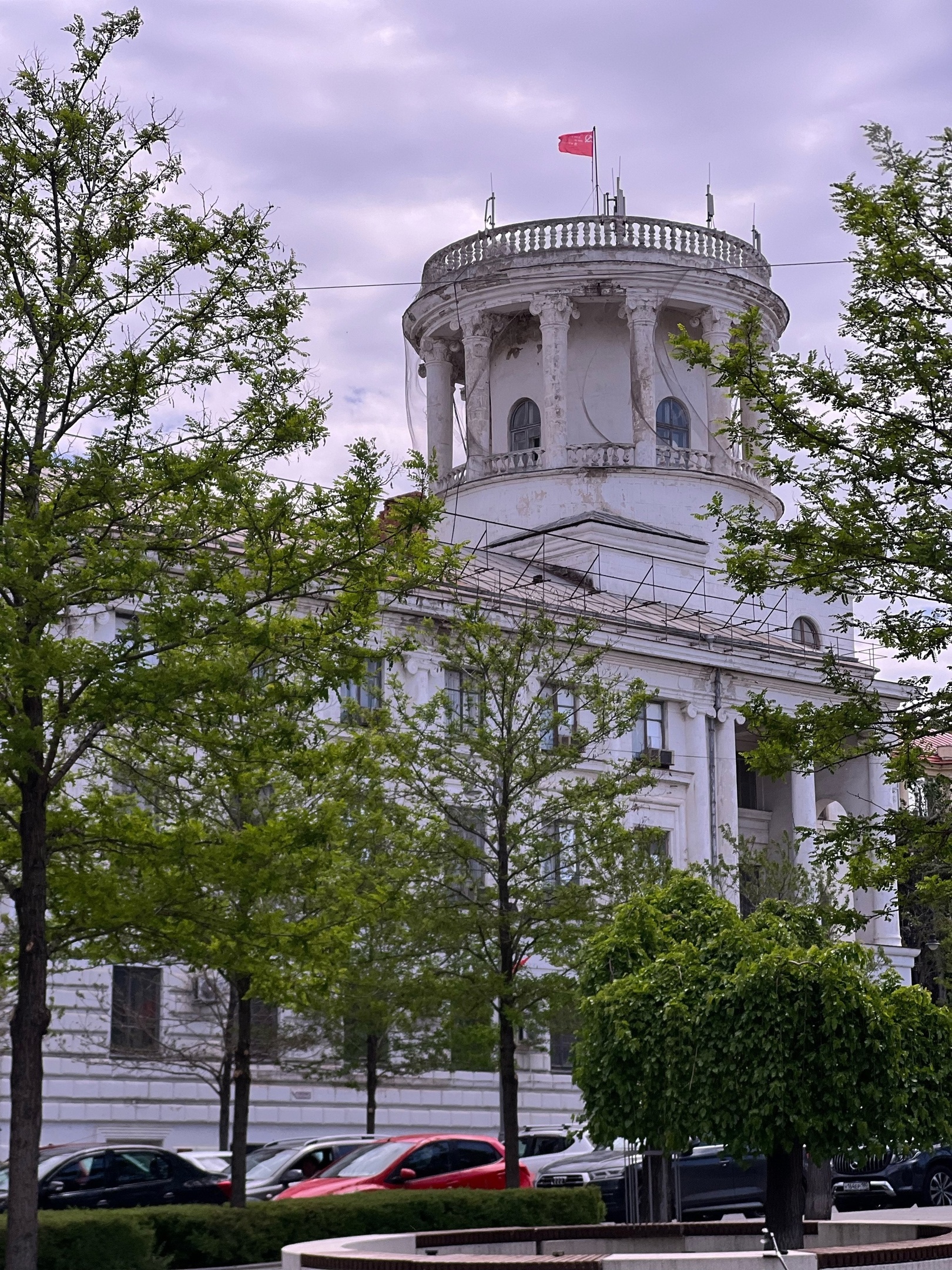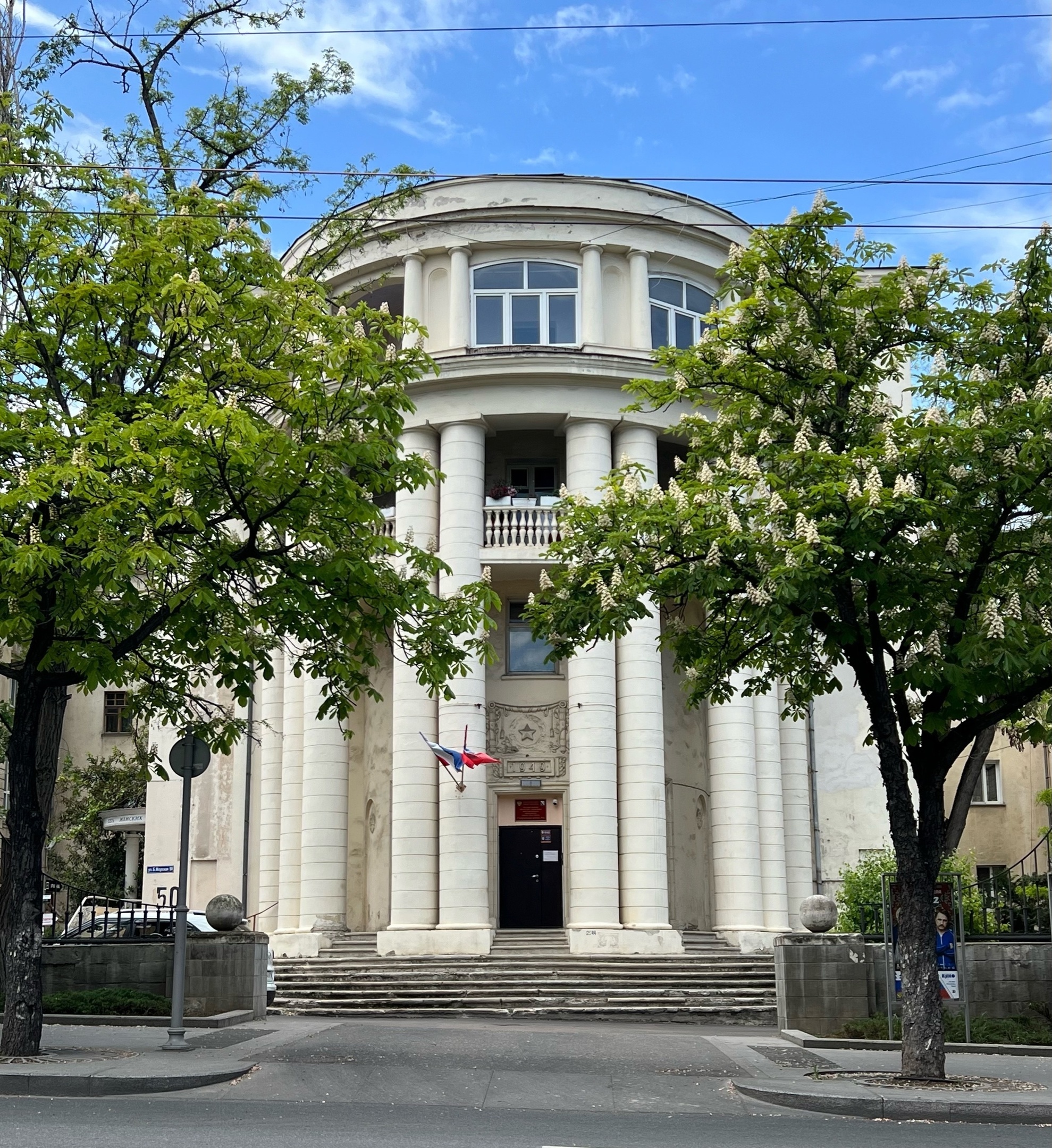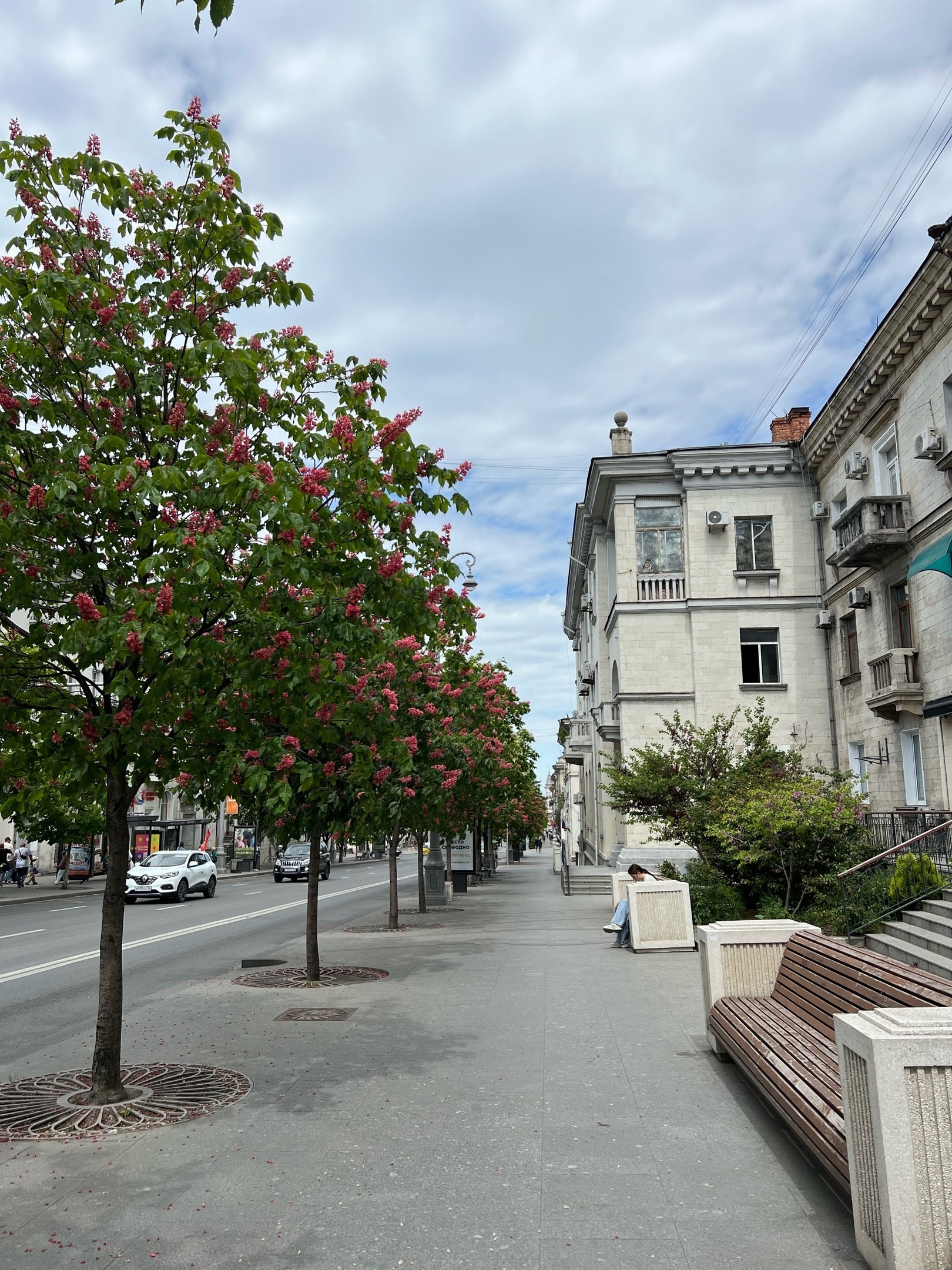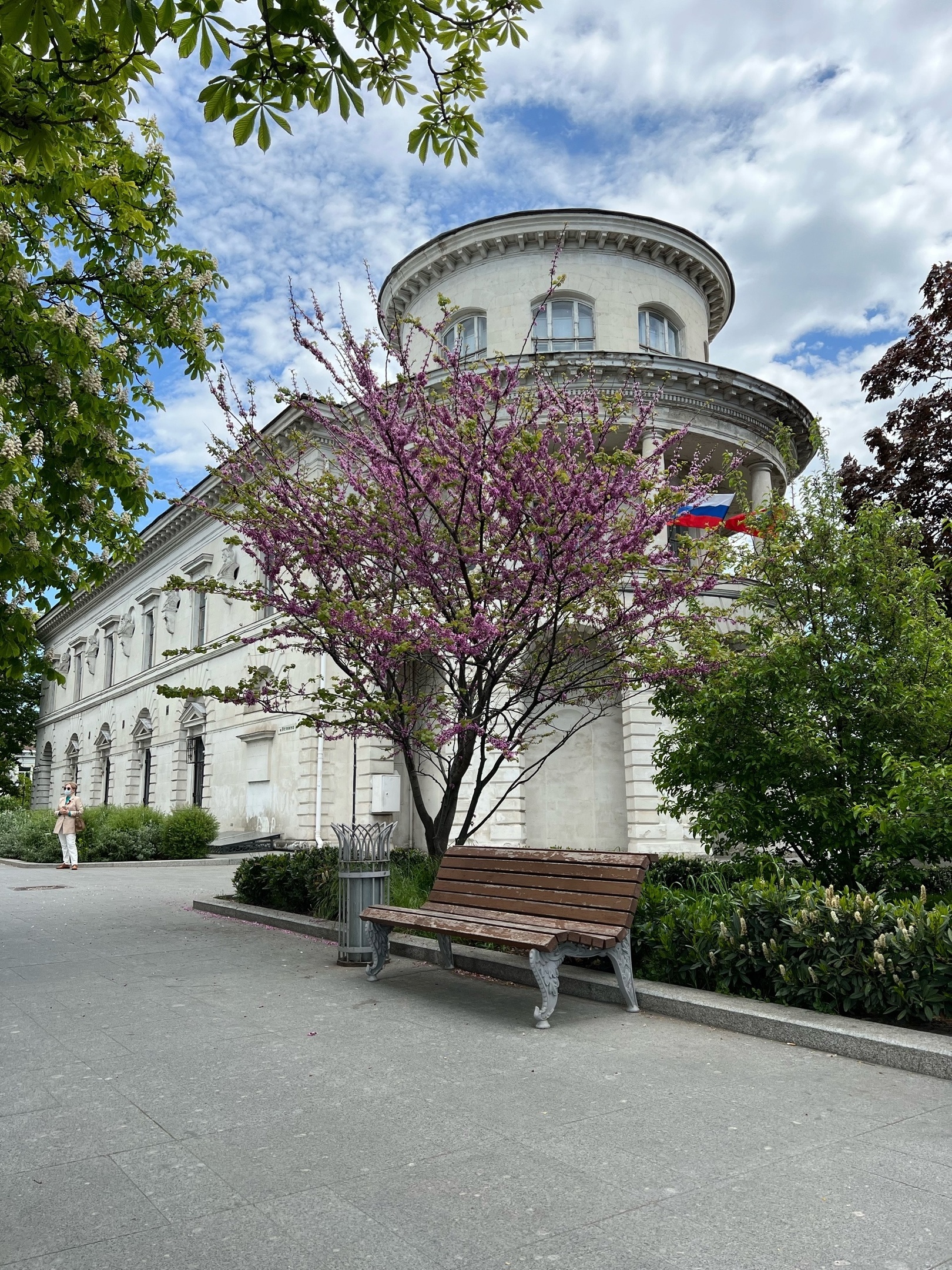 Впрочем, заценить архитектурный ансамбль площади Ушакова мне очень понравился. Видимо, что-то есть конвенционально привлекательное в низкоэтажной сталинской застройке с претензией на ампир/классицизм, да еще белого цвета и окруженная цветущими невысокими деревьями.
