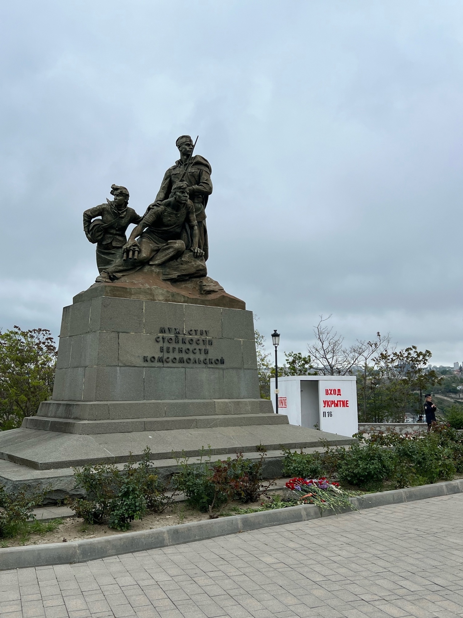 Как и вчера, осмотр экспозиции убежища я закончил раньше, чем остальные, поэтому решил не тратить время на ожидание (как вчера, например), а отправился на смотровую площадку, прогулявшись по Большой морской улице. Смотровая открывалась на Южную бухту, которую нельзя снимать – видимо, расположены тактические цели для потенциальных атак.