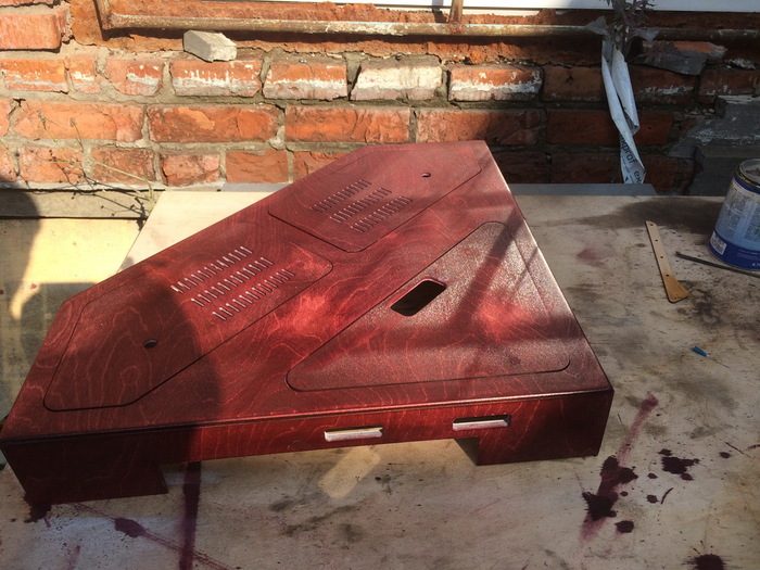 Сам процесс попила фанеры на лазере и самой сборки показывать не буду, скучно это и однообразно. но в начале склеилось вот это: