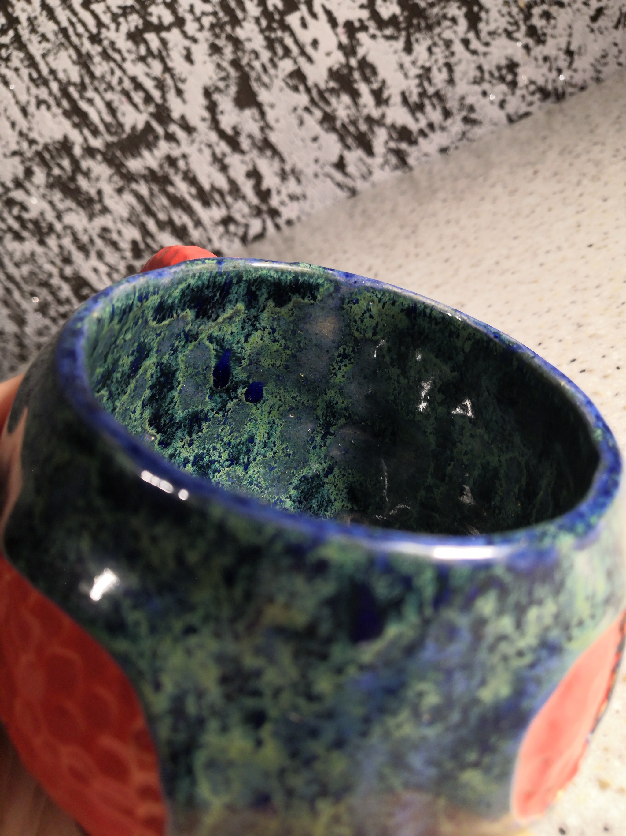 В итоге чашка ушла в подарок, а я планирую что-дь эдакое сложное по форме и с таким же сочетанием глазурей.