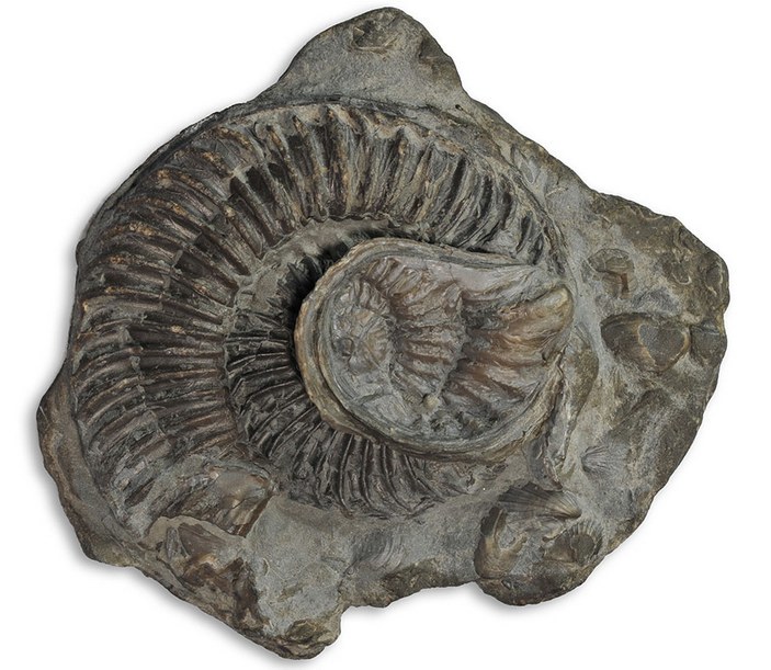 Ксеноморфные устрицы на раковине верхнеюрского аммонита Pavlovia. Фото © Антон Масленников с сайта ammonit.ru