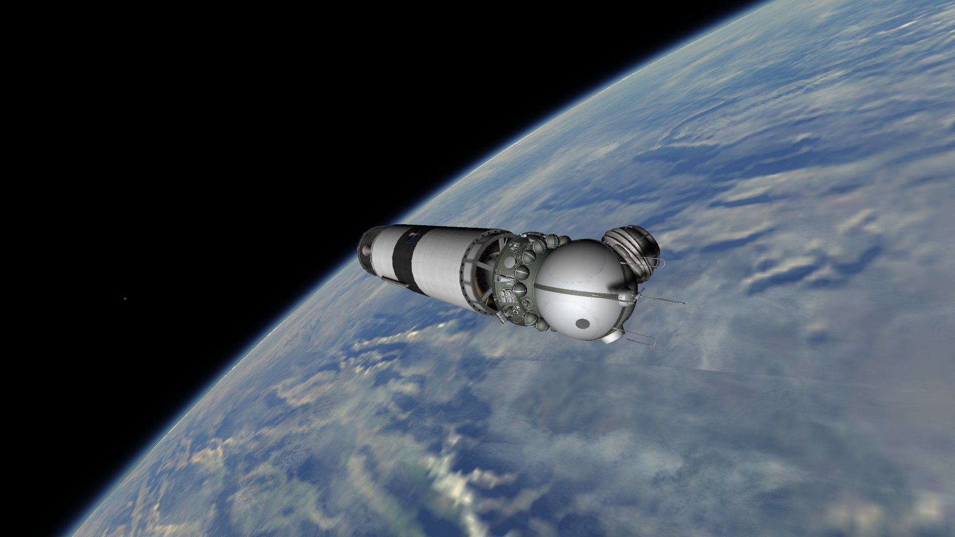 Предполагается запустить КК на орбиту с 2 членами экипажа для осуществления выхода в открытый космос. РН - УР-300. Внешне напоминает РКН Союз. Цель полёта - осуществить выход в открытый космос. Задача полёта - отработать программу вывода на орбиту для РКН УР-300.