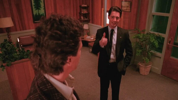 Потусторонний мир Твин Пикс сразу поворачивается к лесу задом, а передом — к агенту ФБР, прибывшему в захолустье с открытыми разумом и сердцем. Купер восхищается ландшафтом и местным колоритом, одной улыбкой снимает извечное недоверие местной полиции к федералам, с наслаждением выпивает чашку кофе и приступает к делу. С легкостью факира извлекает букву из-под ногтя трупа, кокаин — из дневника погибшей, квинтэссенцию этого места — из своих жутких снов. Памятная сцена, в которой он ищет убийцу тибетским методом, бросая камни в бутылку, не кажется такой уж смешной, если вспомнить, что это конец 1980-х: маньяки становятся все изощреннее, а полицейские еще не научились использовать в работе ДНК, и все, что им остается, — буквально гадать.