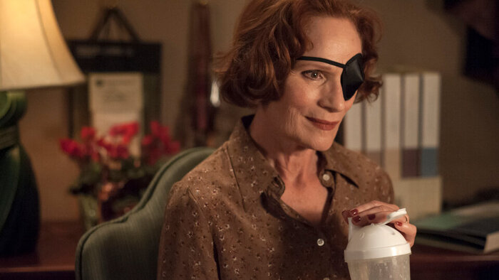Но вообще-то новый «Твин Пикс» не сложнее старого. Просто в нем чуть больше точек действия, сюжетных линий и персонажей, а цветокоррекция сделана с поправкой на время: первые сезоны были сняты для стареньких телевизоров, а новый приятно смотреть с монитора Retina. Но атмосфера кэмповой мыльной оперы снова с нами. Сцены из жизни постаревших героев, которые по-прежнему ходят пропустить стаканчик в «Доме у дороги», больше похожи на фильм в фильме, придуманный сериал-вставку «Приглашение к любви». Эту эксцентричную пародию на «Династию», «Семью Колби» и «Санта-Барбару» в первом сезоне завороженно смотрели все — от секретарши шерифа Люси Моран до Лиланда Палмера. Сейчас в Твин Пикс в моде новая жвачка — веб-сериал бывшего психиатра Джакоби, а ныне подкастера доктора Ампера, который выводит правительство на чистую воду и продает золотые лопаты, которыми советует «выкапывать себя из этого дерьма». Кому-то его проповеди помогают — например, Надин Херли. Слушая доктора Ампера, она устаканила психику и развелась наконец-то с мужем, который никогда ее не любил.