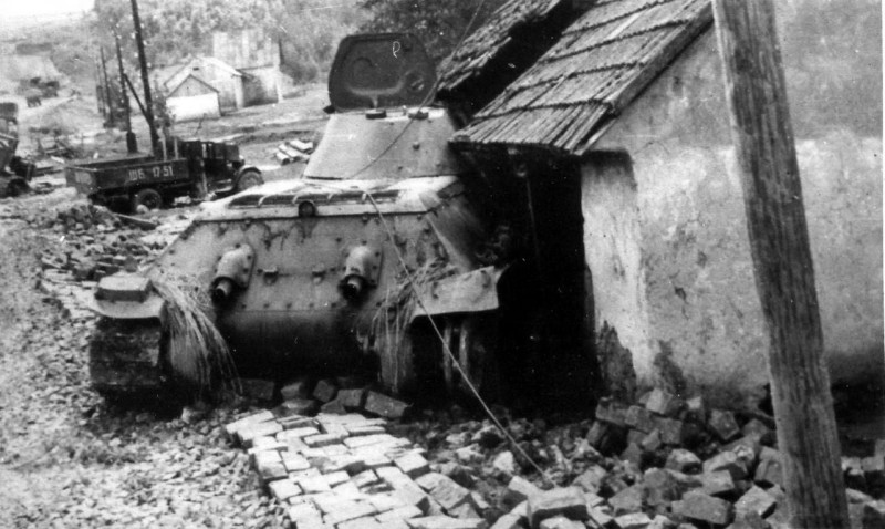 Деревню Хламидино, когда еще немцы отступали от Москвы, они сожгли. Там каким-то образом уцелел один домик. Здесь был подбитый русский танк, около этого домика стоял. Наши часто наведывались сюда. Разведчики все-таки народ какой! Ловкие, находчивые, всевидящие!
