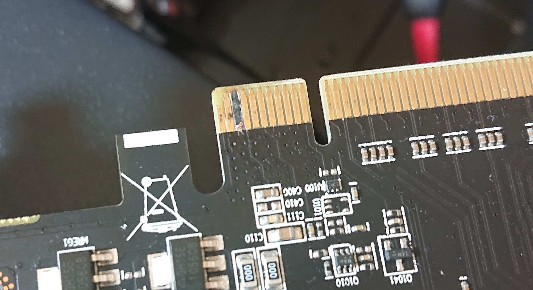Разобрал комп, достал видеокарту и увидел отгоревшую ножку.
