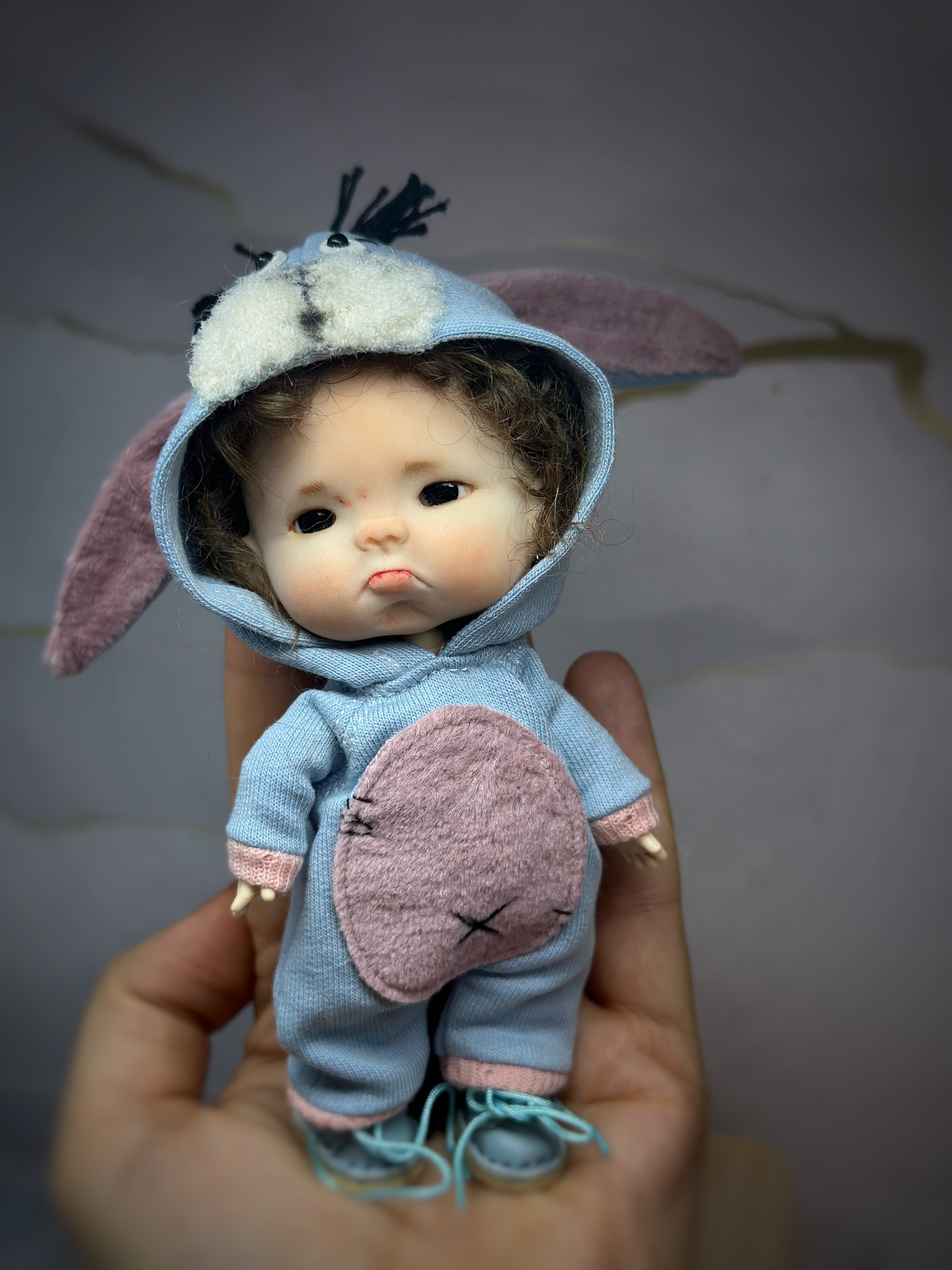Малыш выполнен на шарнирном теле, может принимать разные позы.