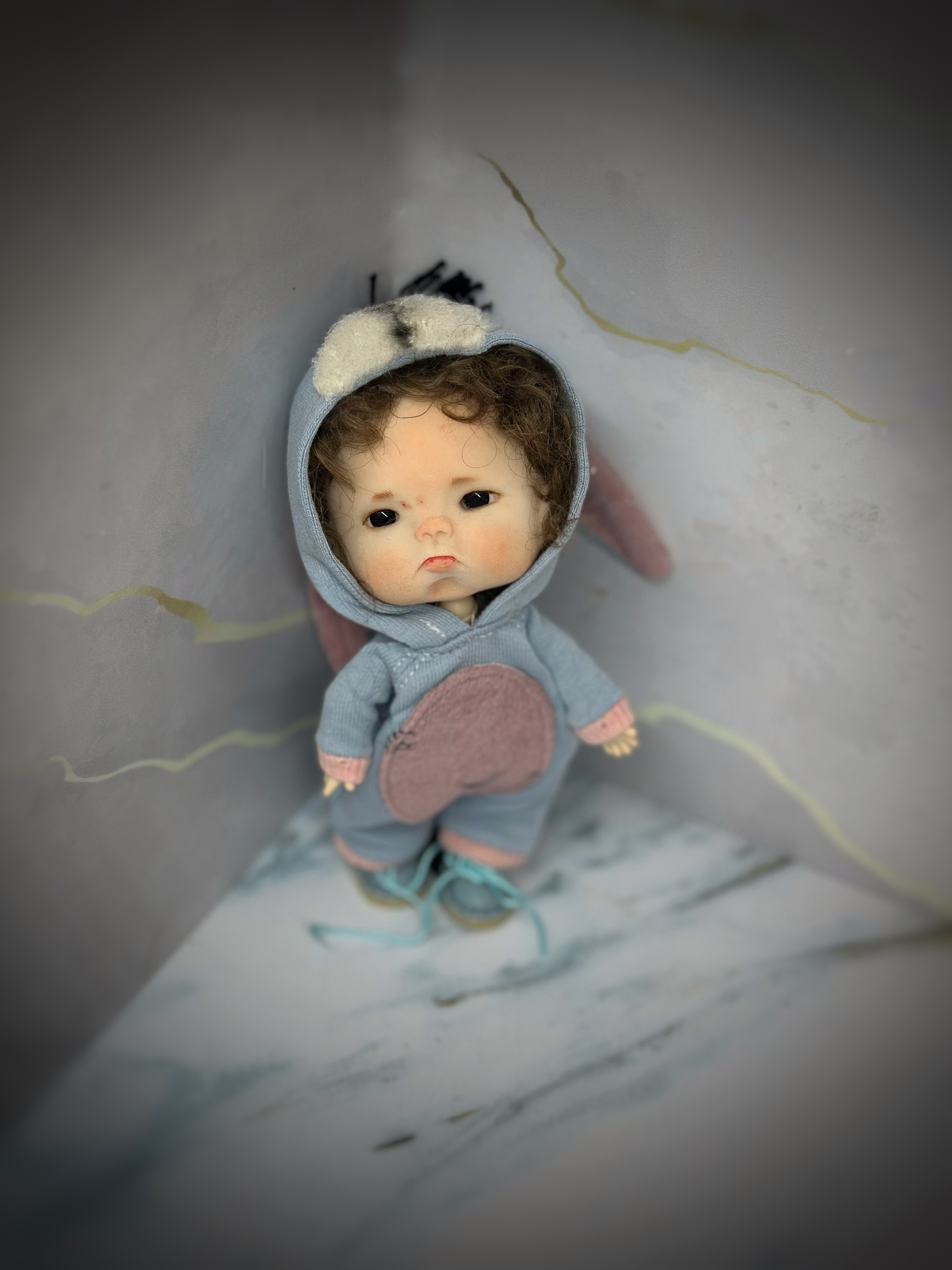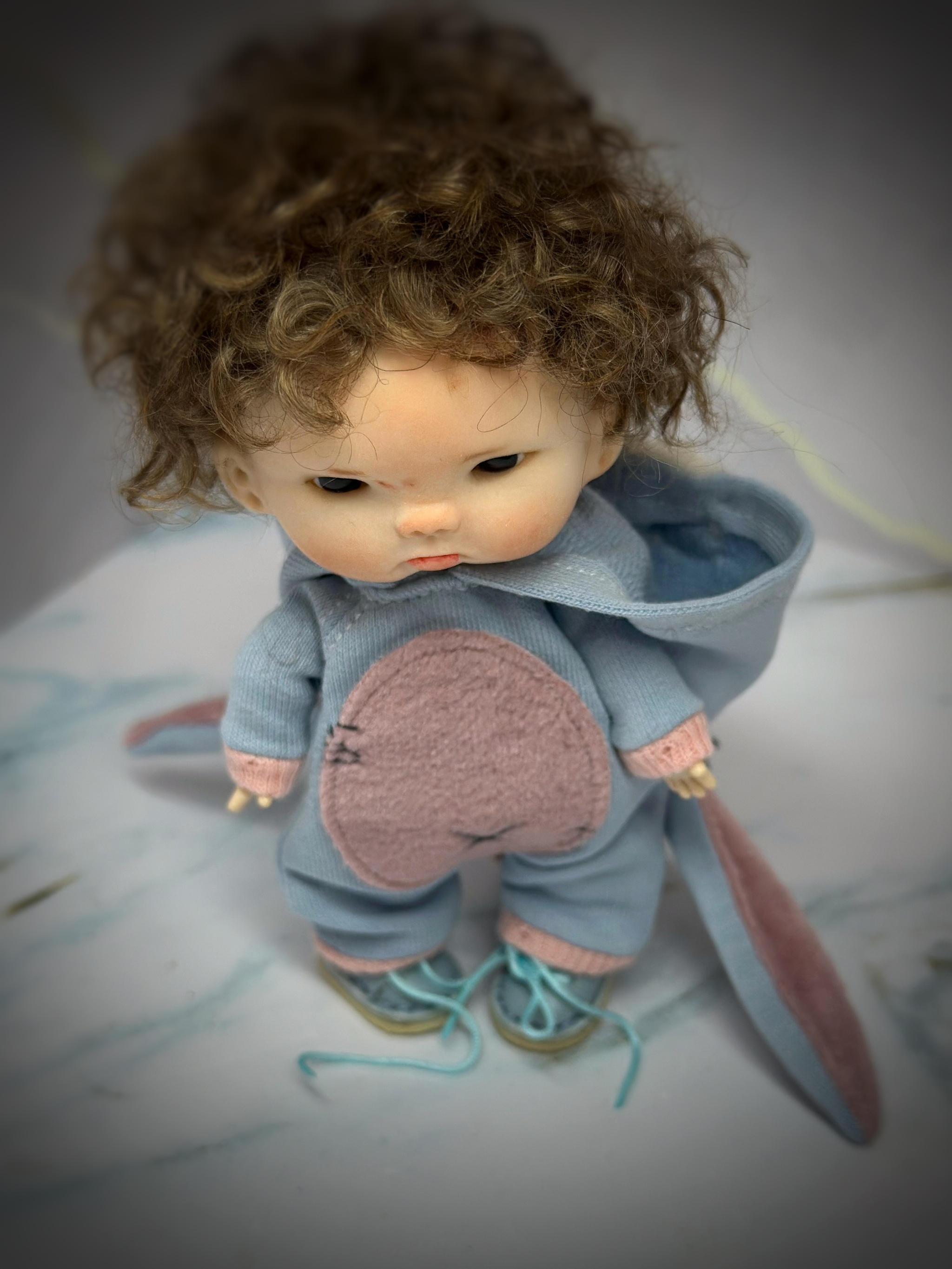 Очередного малыша сделала. Получился он с небольшой грустинкой- то ли от того, что ему не дали конфету или не купили очередную машинку).